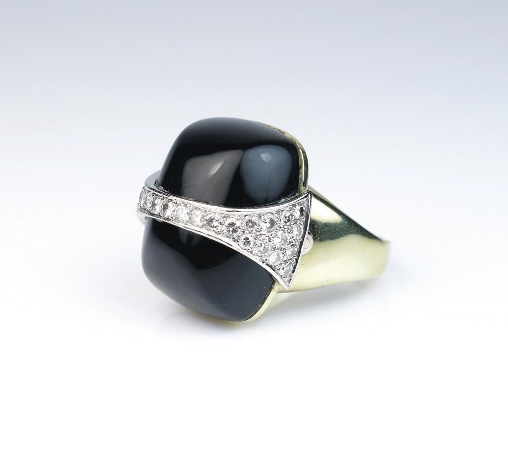 Lot 725b Incredible Italian design ring featuring a fine black Jade and