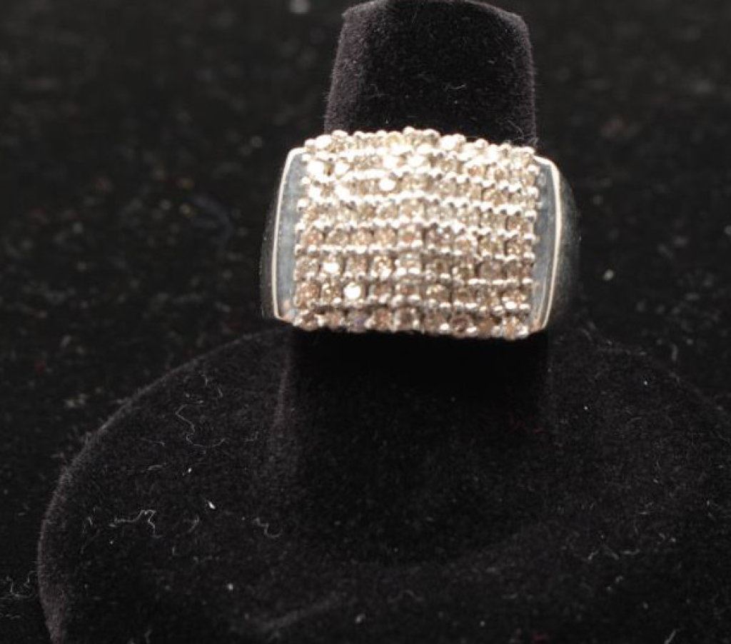 Lot 750c 14k white gold wide diamond band set with 72 diamonds