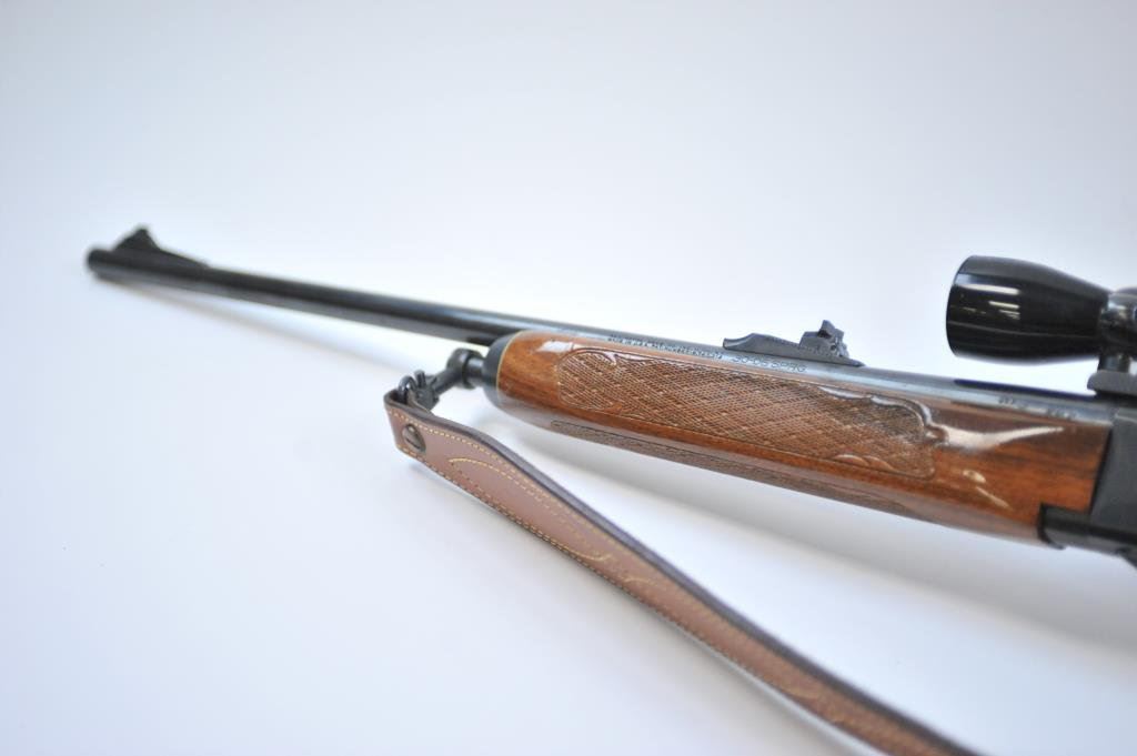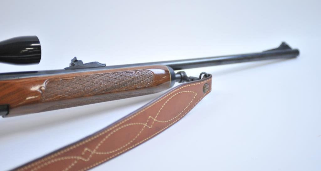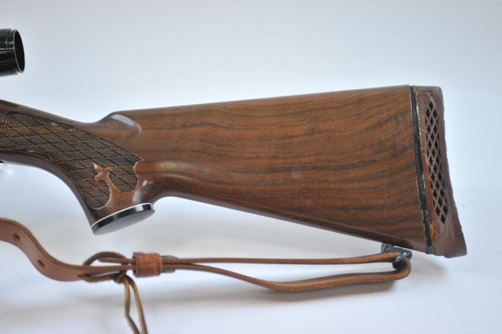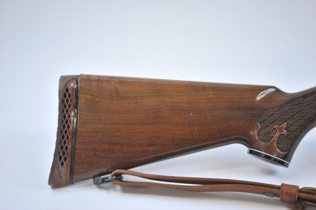 banner scope on the Redfield mounts, S/N 7431324. The recoil pad has been added with quick detachable sling swivels and Bianchi sling. Very good plus to near fine. 97%-99% except recoil pad has deteriorated and needs replacement. (Modern) Est.: $400-$800