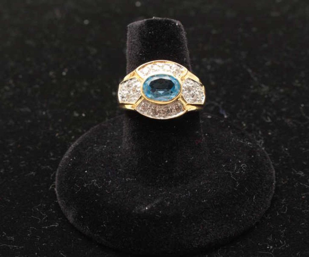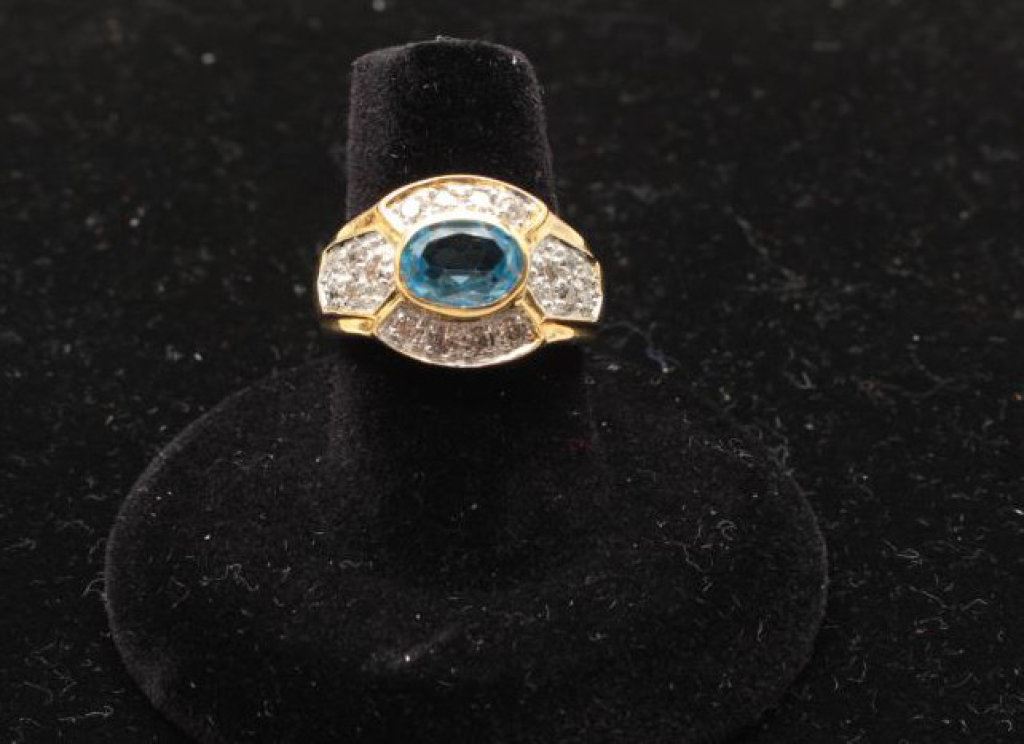 oval aquamarine approx 2.5ct and 18round diamonds. Est.: $1,000 -$2,000.