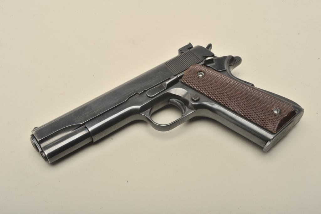 caliber, 5” barrel, old re-blued finish, checkered maroon plastic grips, S/N S M 13066, in overall very good condition as re-finished, fine bore, crisp action, very good markings and very good + grips. (C&R/PPT). Est.: $1,300-$2,600.