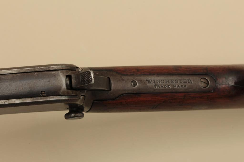 octagon barrel, blued finish, wood stocks, S/N 318682, in overall good condition showing areas of muted blued finish on barrel mixed with brown patina, brown patina to receiver, fair + bore, crisp action, good markings and good wood with scattered wear, mars and scratches from carry and storage. (C&R). Est.: $200-$400.