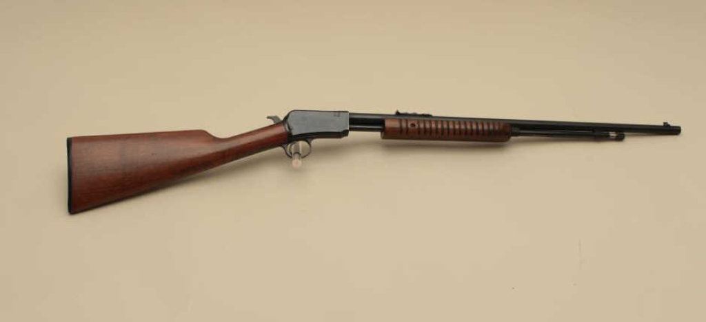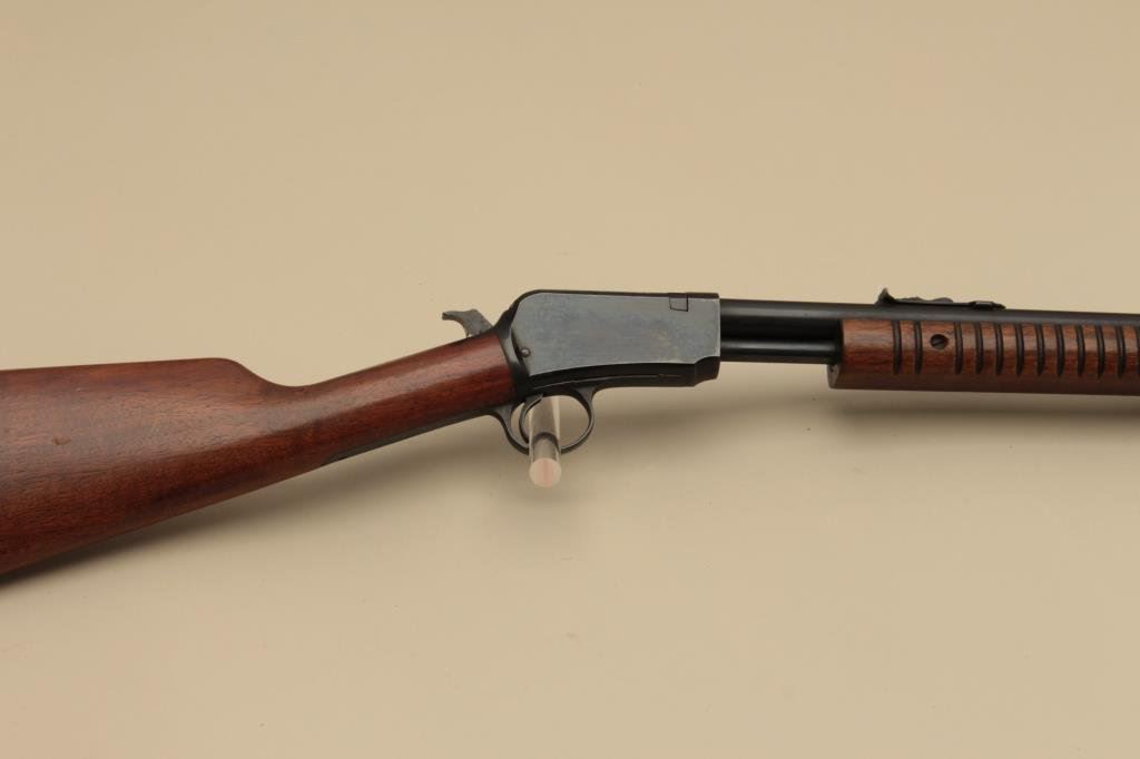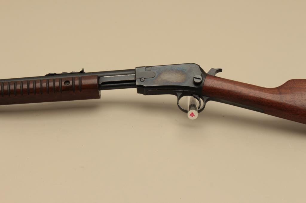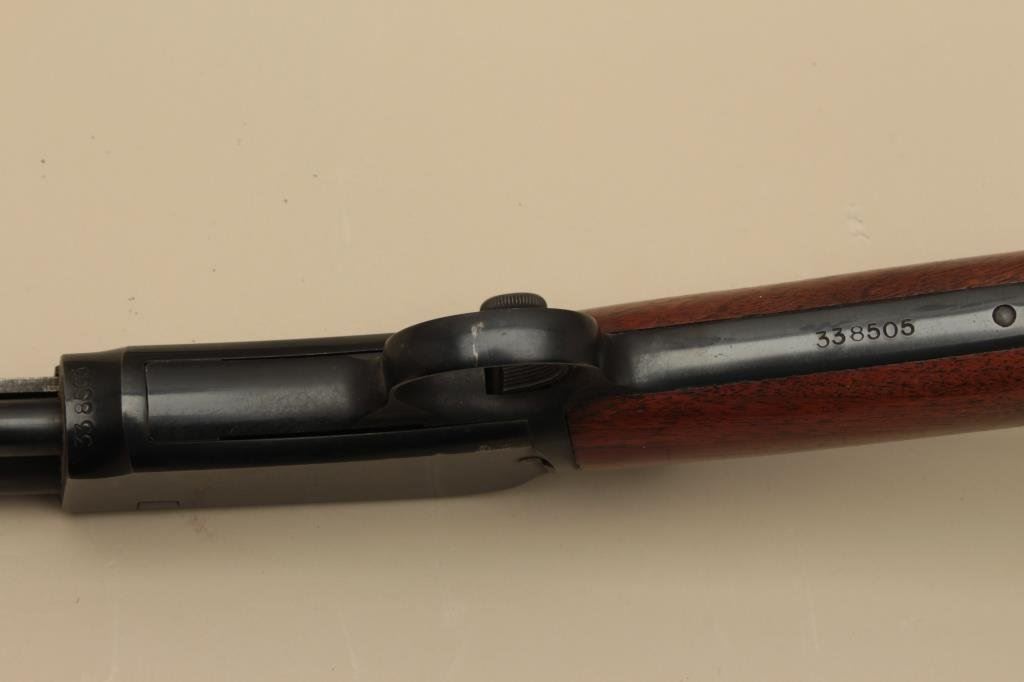 LR caliber, 23” round barrel, blued finish, wood stocks, S/N 338505, in overall very good to fine condition with majority of original blued finish, fine bore, crisp action and markings, very good + wood stocks with a couple minor small storage mars. (Modern). Est.: $300-$600.