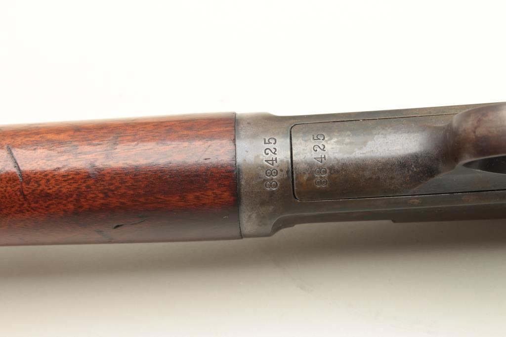 a 20” barrel, lyman tang sight, S/N 88425. 80%-90% blue on the barrel. 50%-70% flaking and toning blue on the frame. Good to very good wood with some scratches and staining to the varnish. Tight action with fine bore. (C&R) Est.: $400-$800