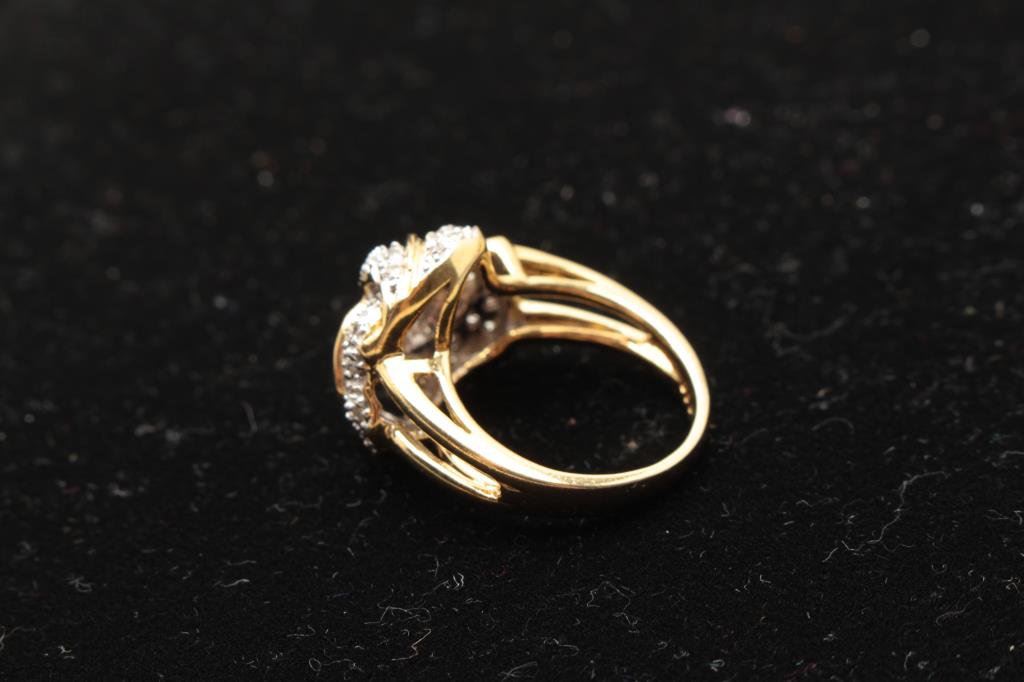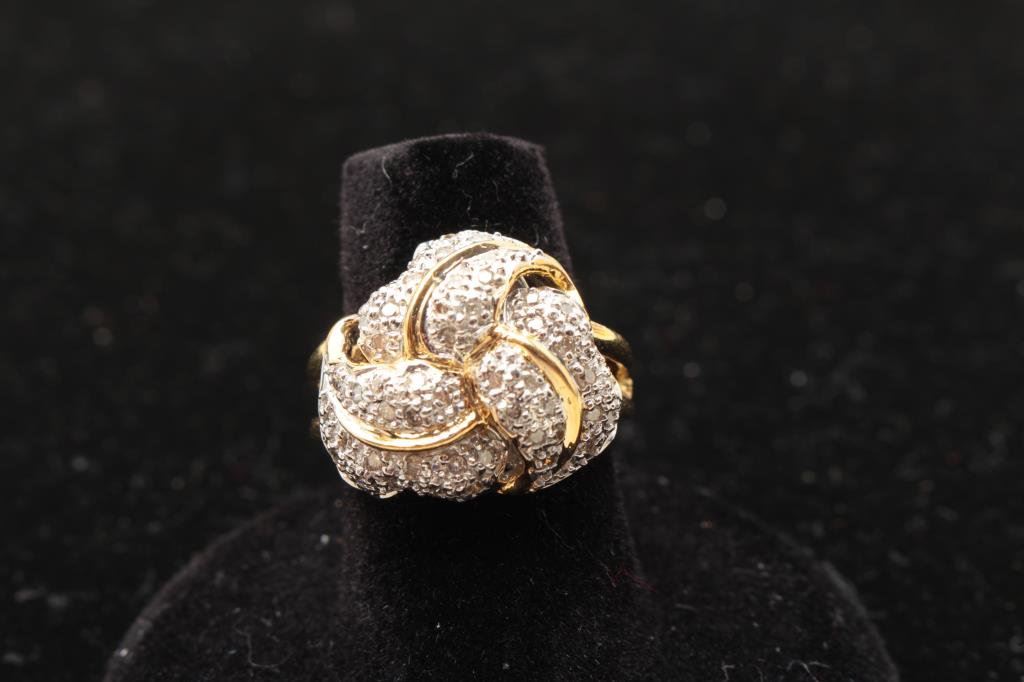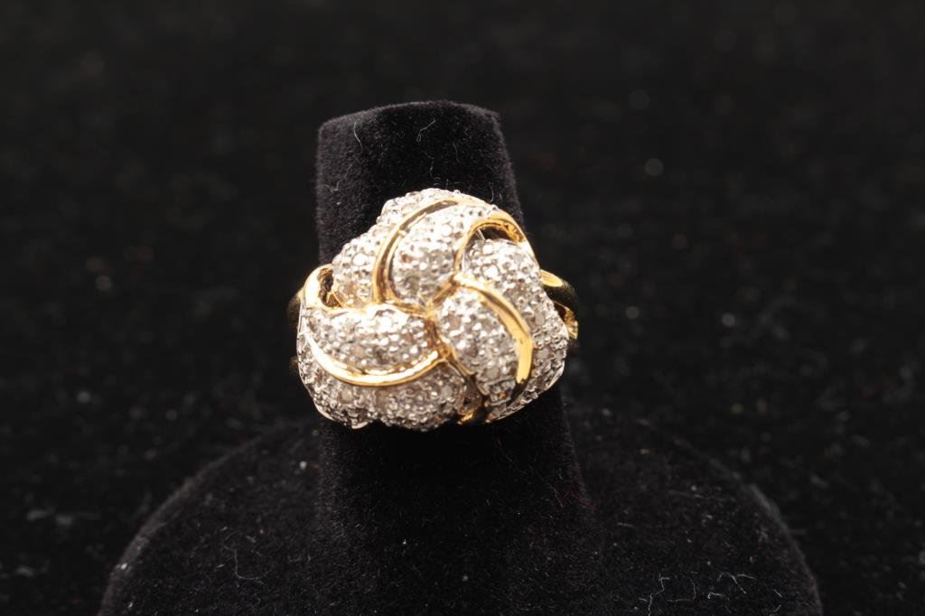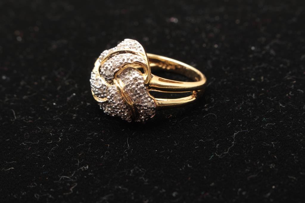 Lot 865 Fine loveknot design cluster ring in 14 kt yellow gold
