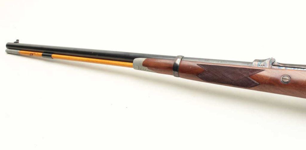 Fine to excellent condition. Minor handling and storage marks on the wood. Very little to no use. 98% plus overall. These mid-1970’s rifles were good quality and very authentic to original specs. (Modern) Est.: $600-$1200