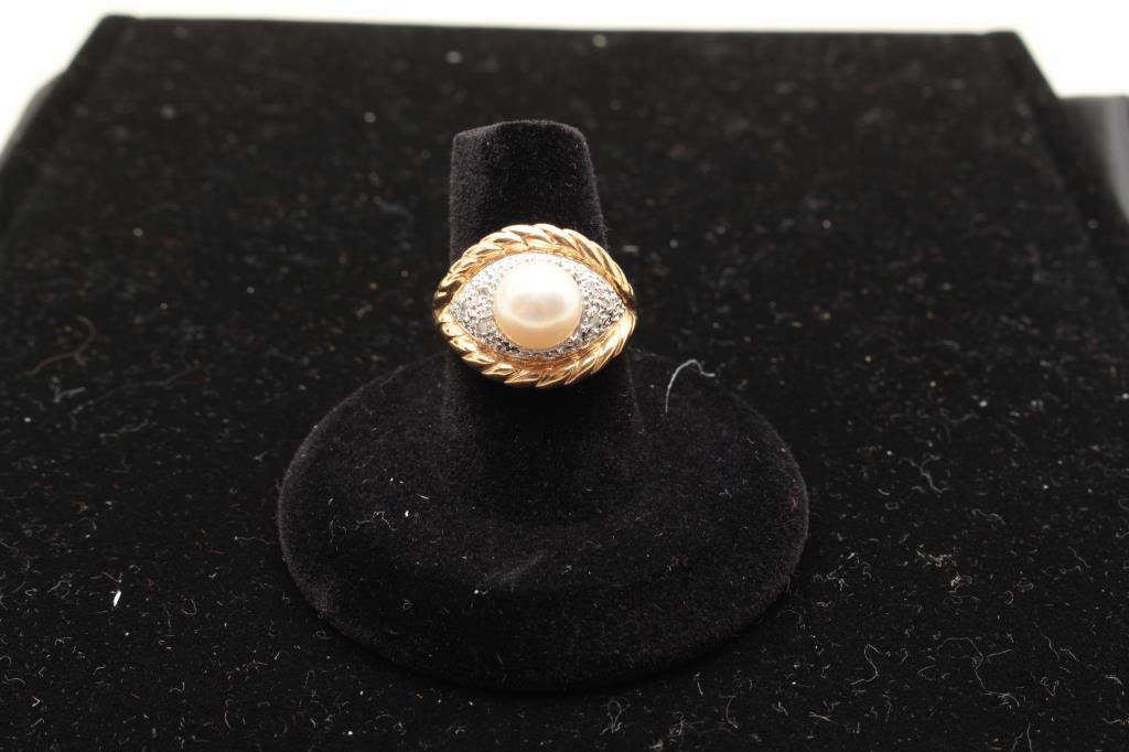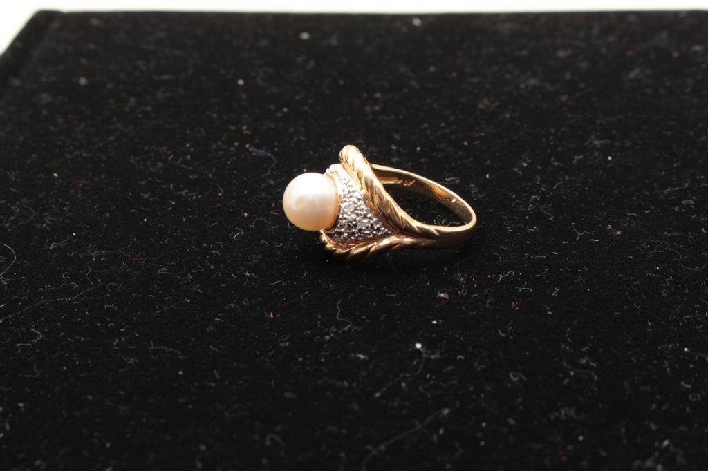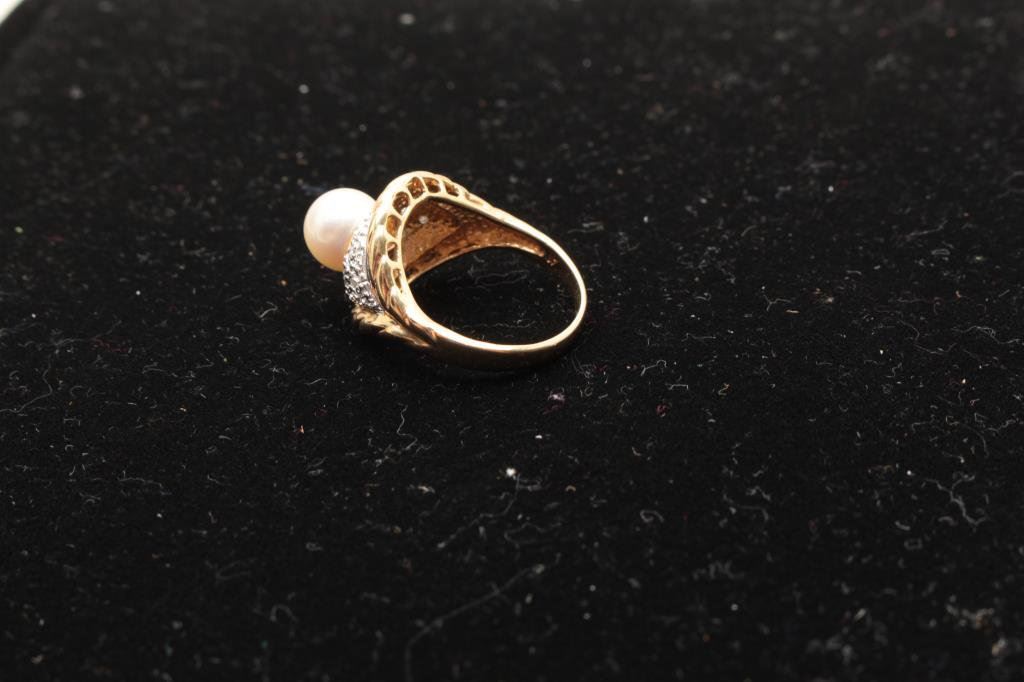 Lot 875b 14kt yellow gold ring set with a round akoya pearl