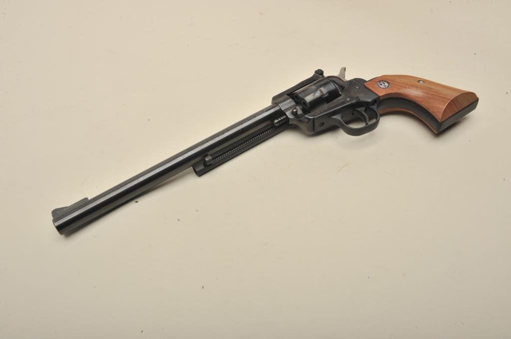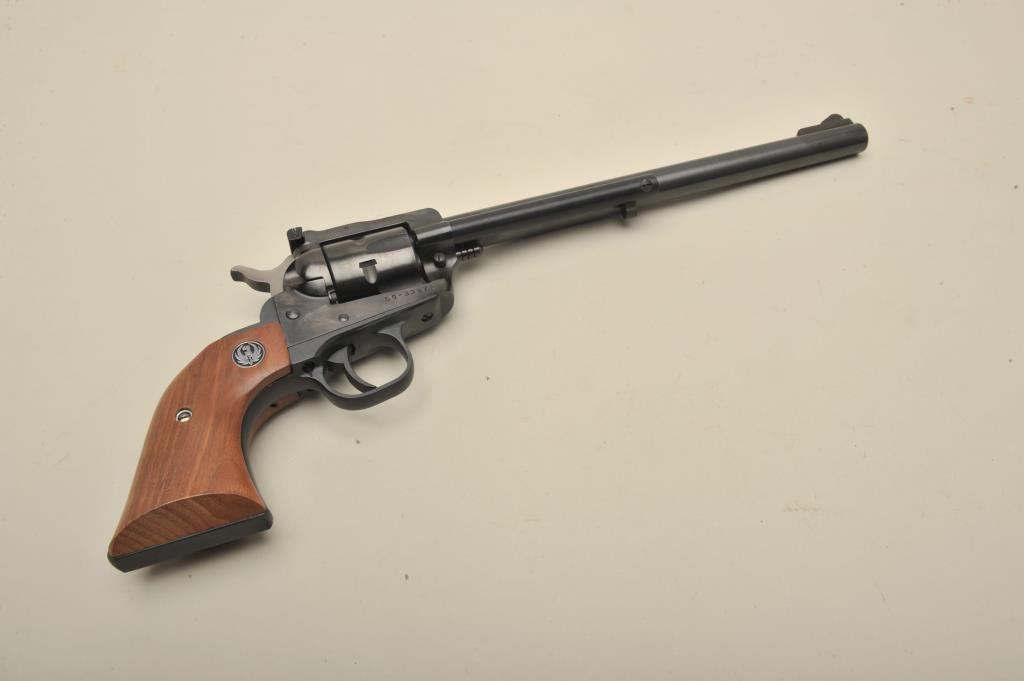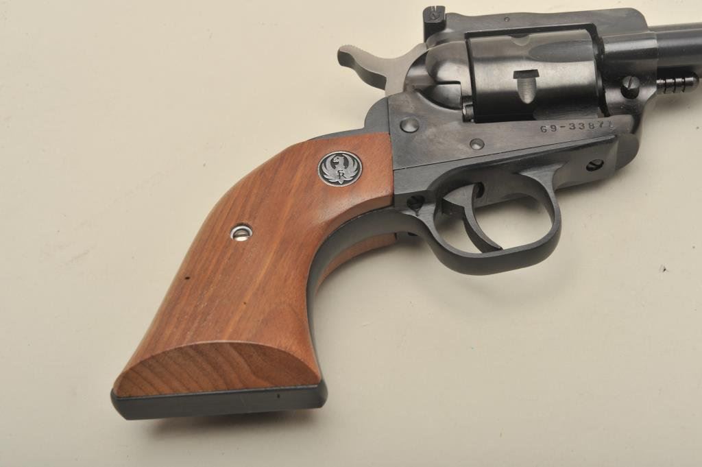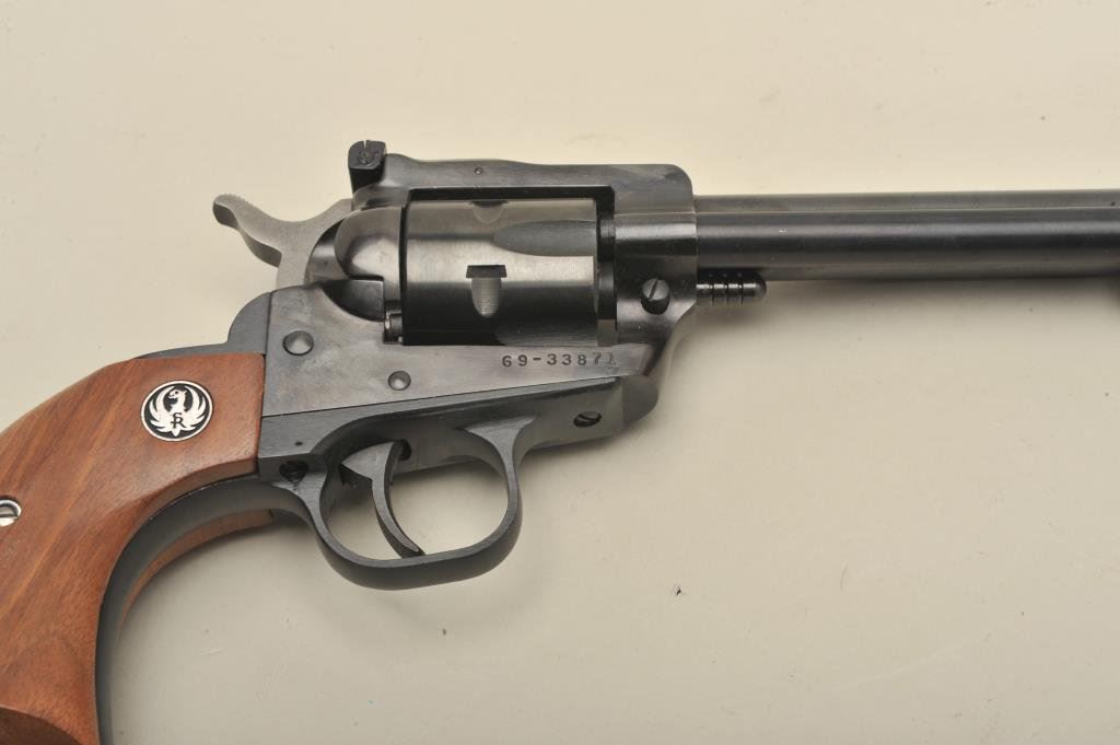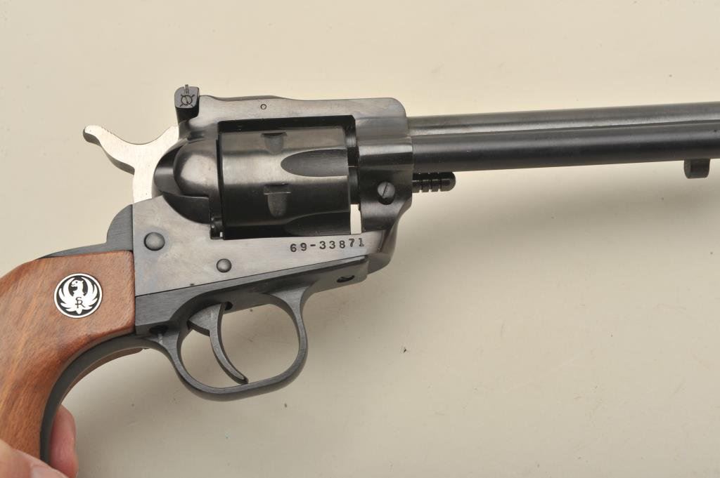 blued finish, wood medallion grips, S/N 69-33871, in overall like new condition in factory yellow and black cardboard box with extra .22 Win. Magnum caliber cylinder. (Modern/PPT). Est.: $400-$800.