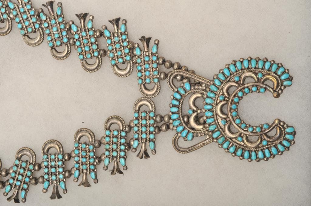 Lot 895 Squash blossom Indian made necklace with tourquise mounted in silver.