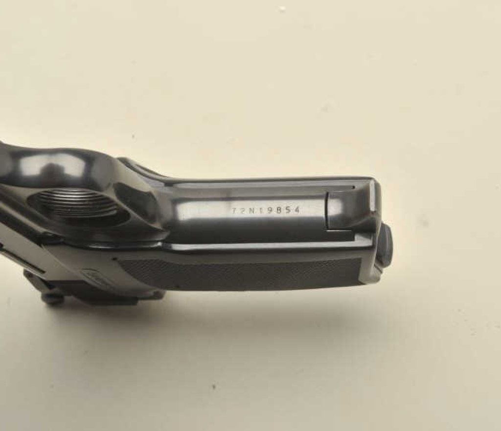 black grips, S/N 72N19854, in overall fine condition displaying the majority of its original blued finish, very good to fine bore, crisp action and markings, Belgian-made; fine grips. (Modern/PPT). Est.: $350-$700.