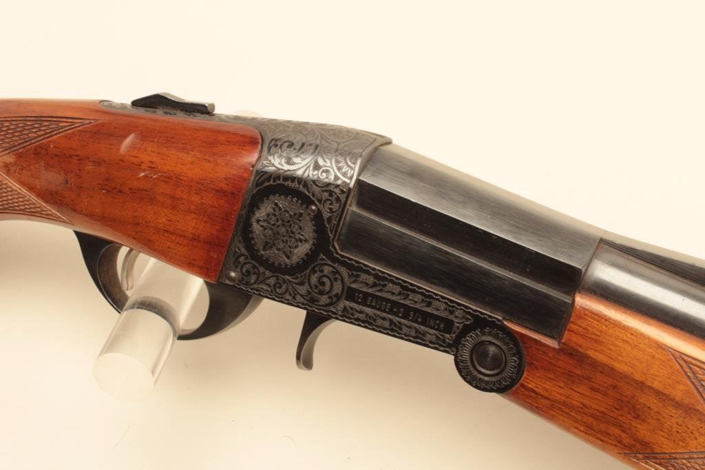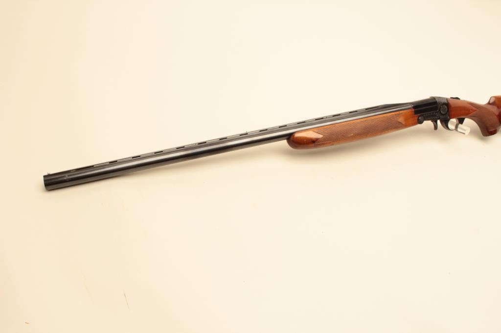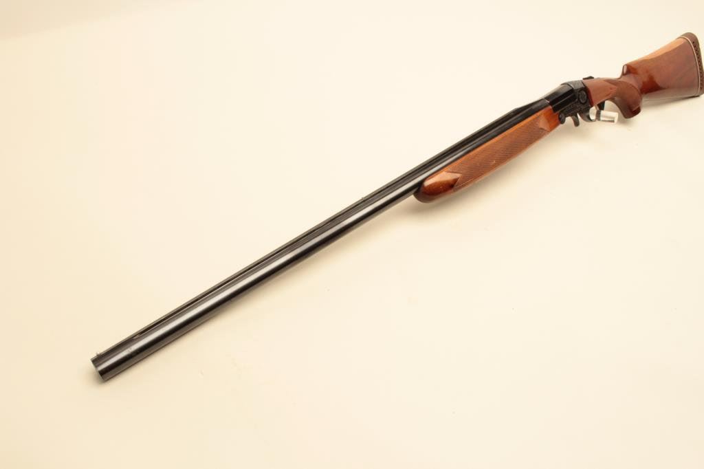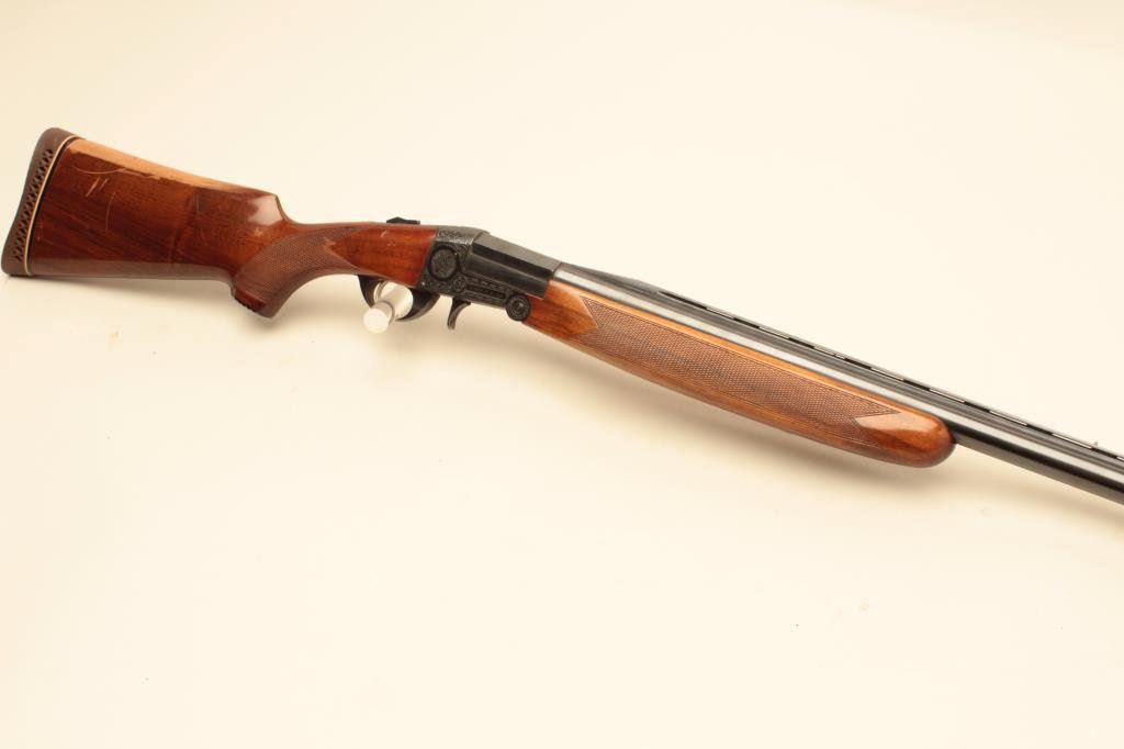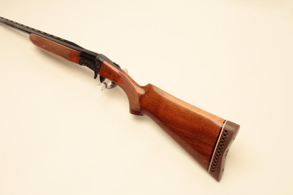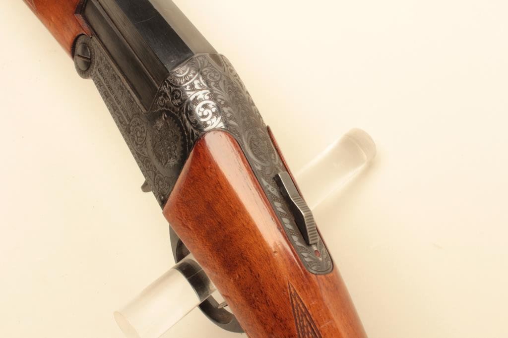 shotgun, 12 gauge, 32” ventilated rib barrel, blued finish, checkered wood stocks, hard rubber butt pad added, S/N 35738, in overall good condition with a good bore, crisp action and tasteful engraving to the receiver; wood butt stock needs refinishing given removal of finish from top of butt stock however, otherwise solid. (Modern). Est.: $350-$700.