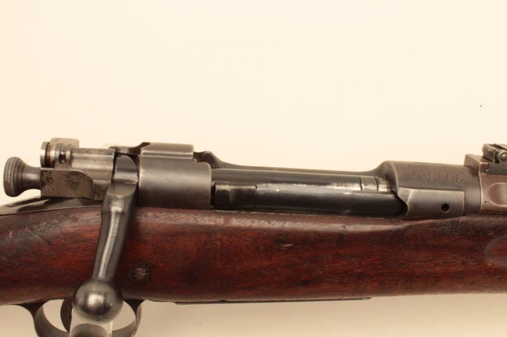 S.A. barrel dated 8-18, military finish, wood stock, S/N 948006, in overall good to very good condition with ample remaining military finish to metal surfaces, good bore, crisp action and markings, good stock with partial circle P proof and partial inspector’s cartouche. (C&R). Est.: $350-$700.