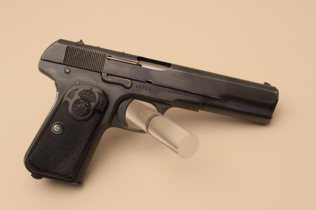 checkered hard rubber grips, S/N 62710, in overall very good condition displaying the majority of its finish, very good bore, crisp action, very good markings and grips; “I17 No. 1440” stamped on left side of frame above the grips. (C&R/PPT). Est.: $300-$600.