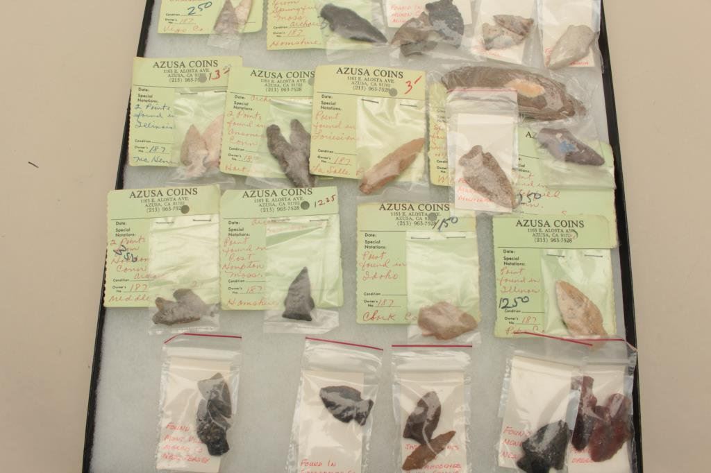 Lot 1012 35 arrow heads circa 1800-1910 mostly Id. Collected 1950-70s. In