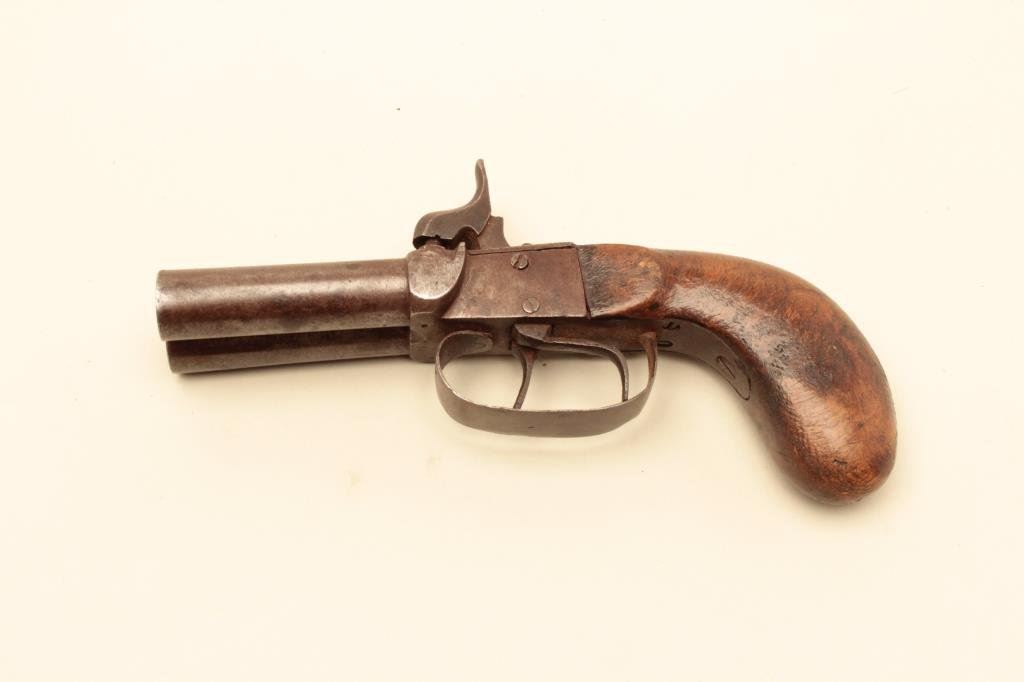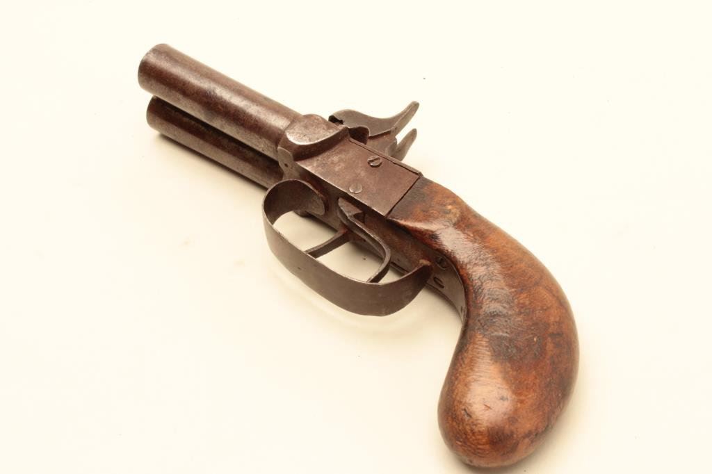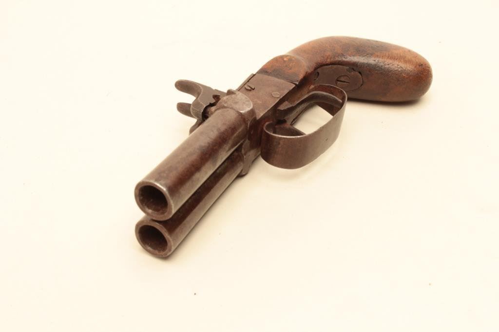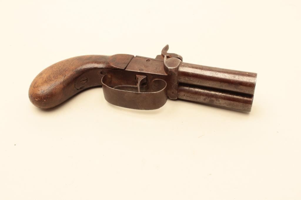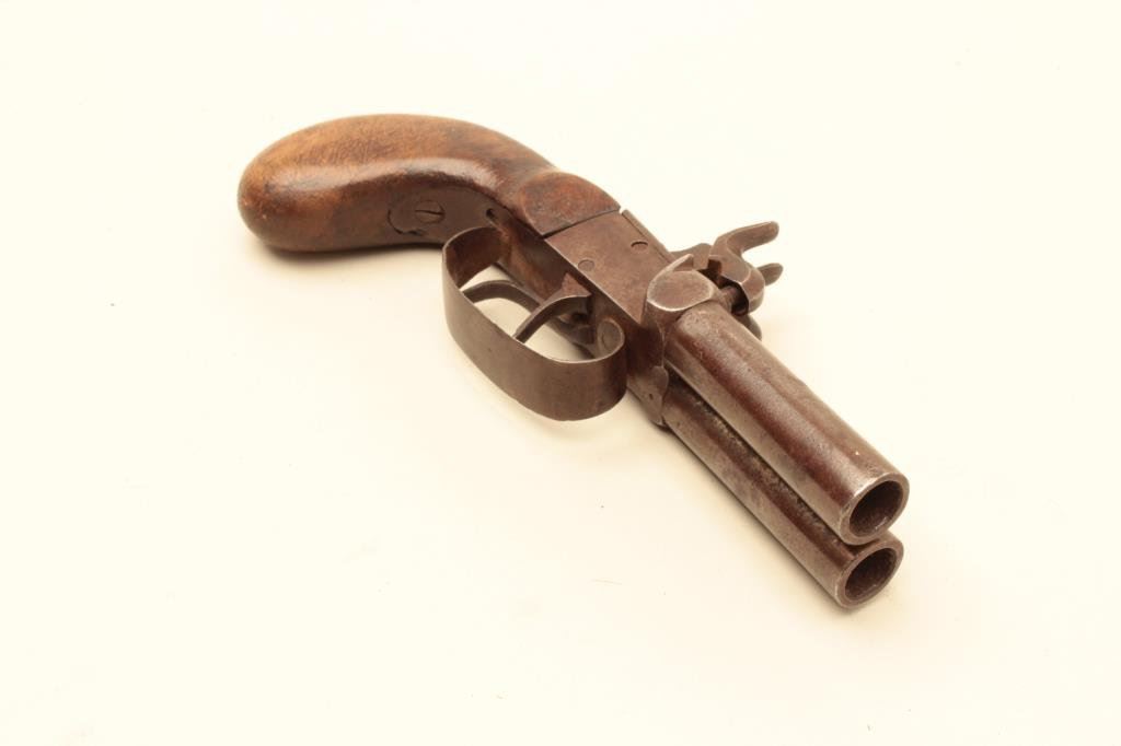 Lot 1021 Double barrel percussion Snake Eyes pistol circa mid 19th century