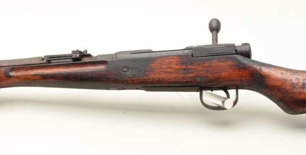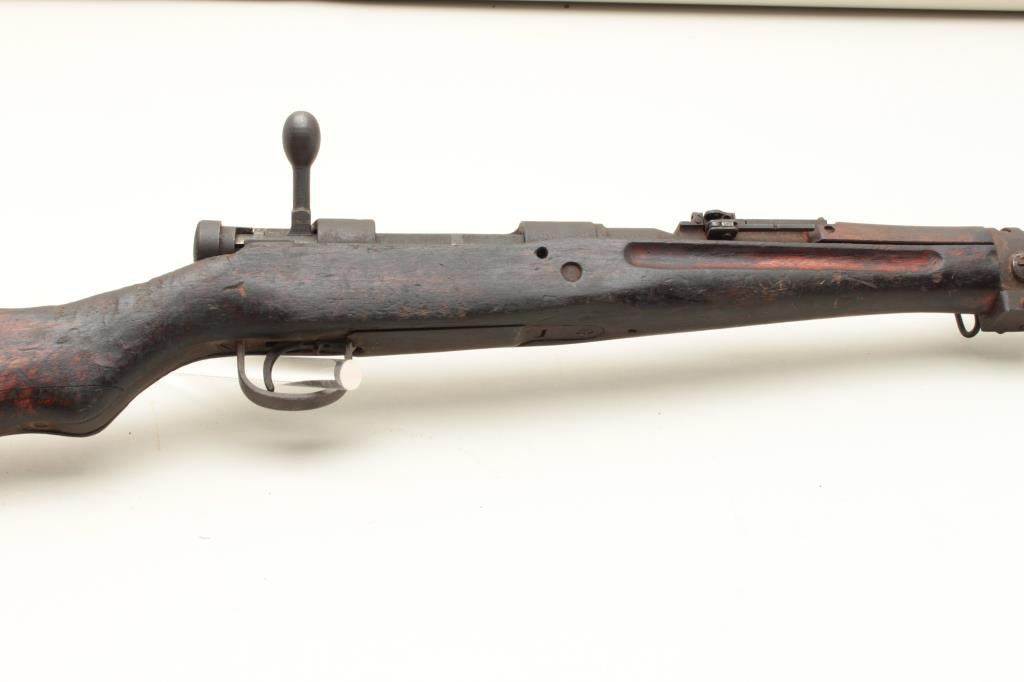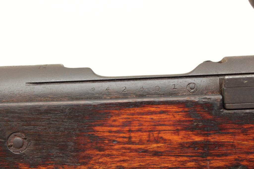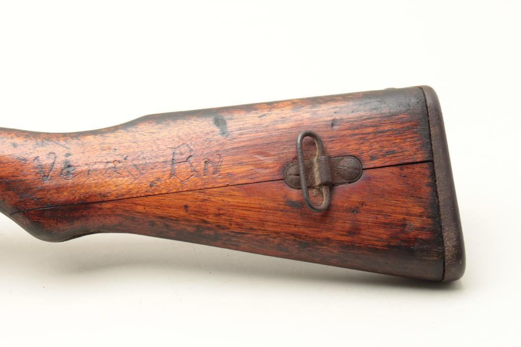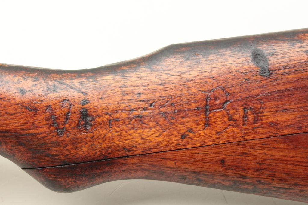 and dust cover removed aircraft sight. Mismatched bolt. G.I. carved name in the stock. Fair to good. Dirty and as captured. (C&R) Est.: $100-$200