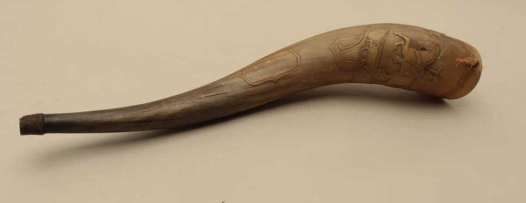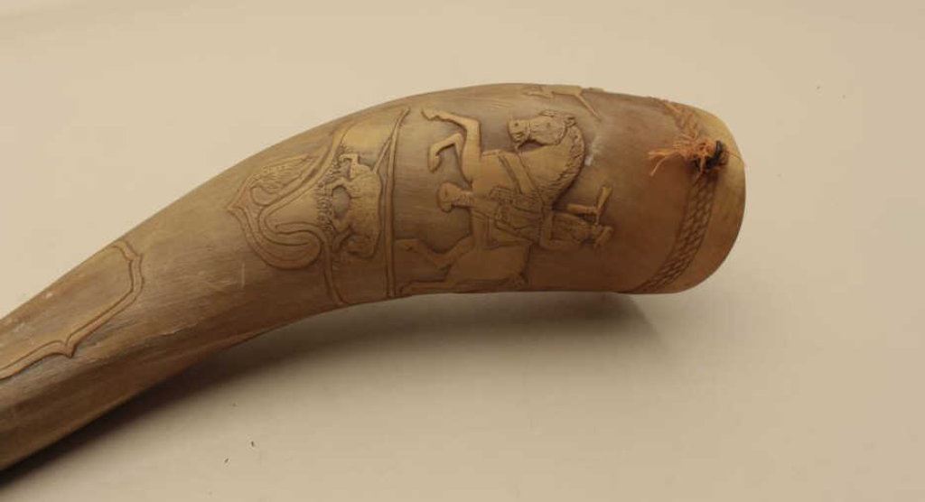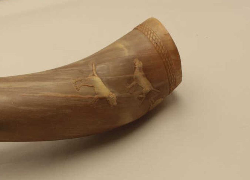 horn is approximately 21” overall and nicely accomplished with carvings of a hunter on horseback with hunting horn and dogs. Est.: $500-$1,000.