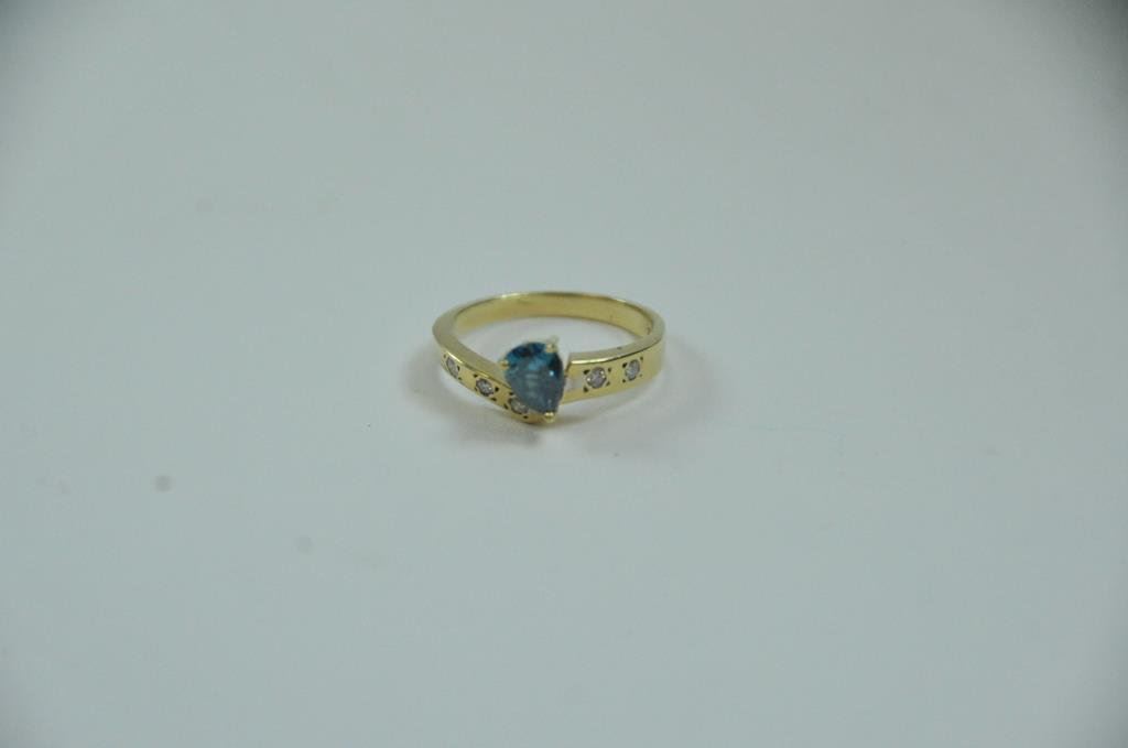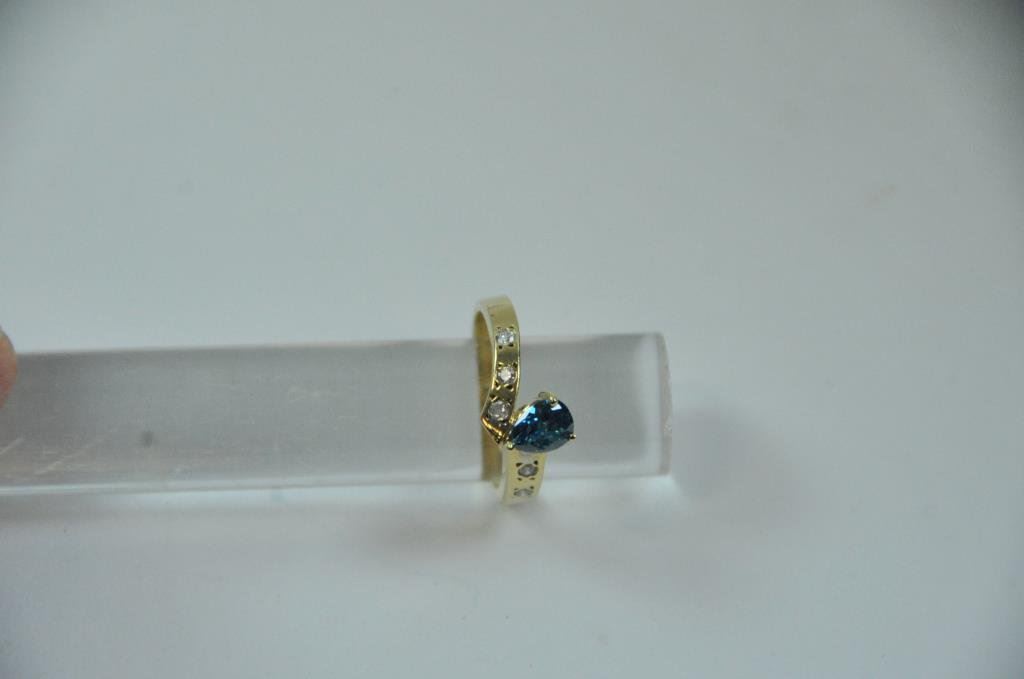 Lot 1095a Modern 14k yellow gold ladies ring set with a pear