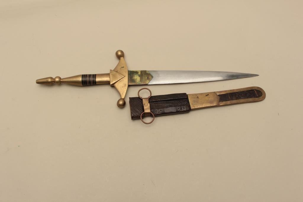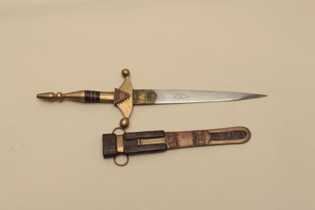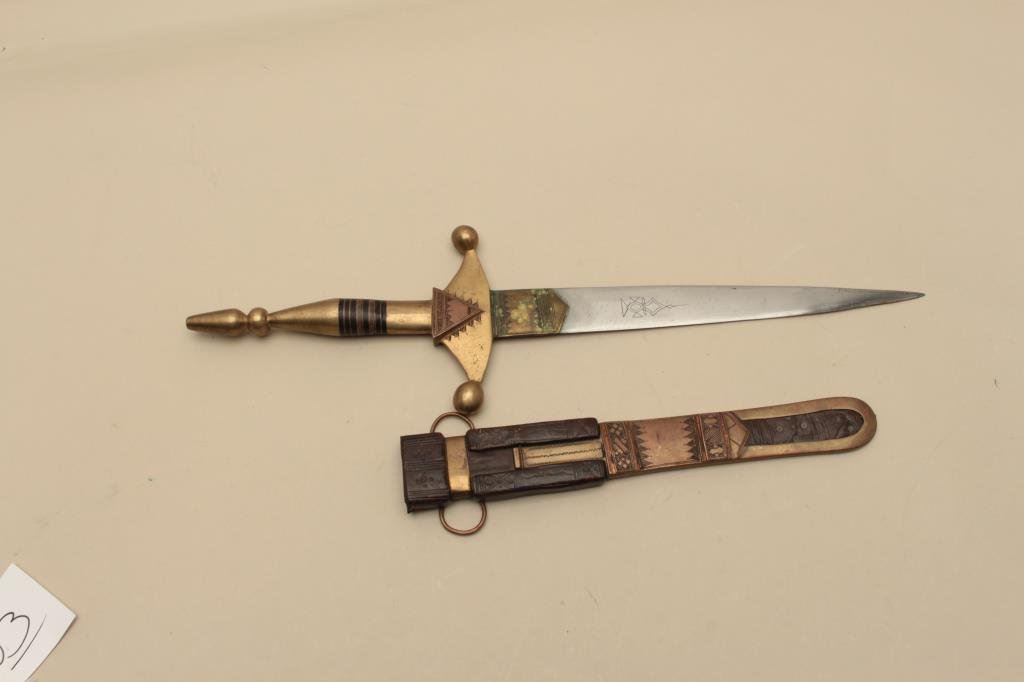 brass, copper and leather sheath; overall very good condition. Est.: $650-$1,300.