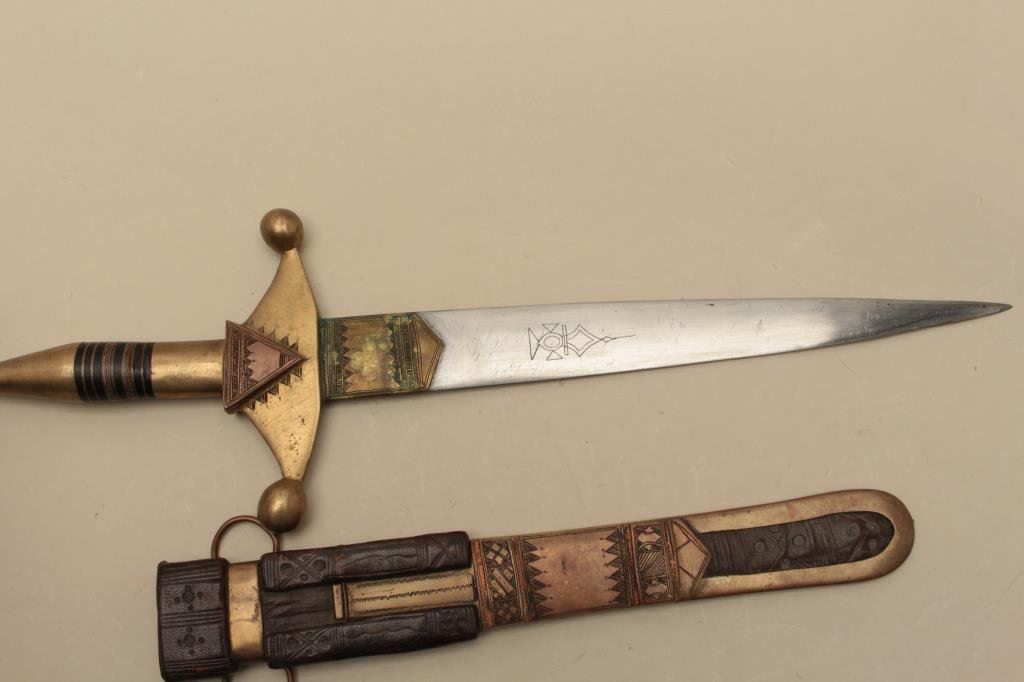 Lot 1103 Arabian Touareg dagger, approximately 18 overall, brass mounted, with decorated