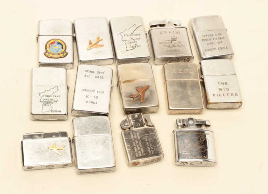 Lot 1111 14-Zippo lighters as a lifetime collection, Korea to Vietnam, most