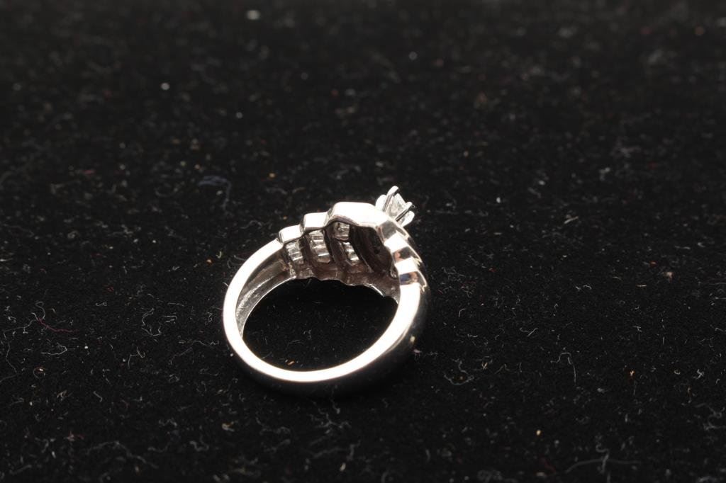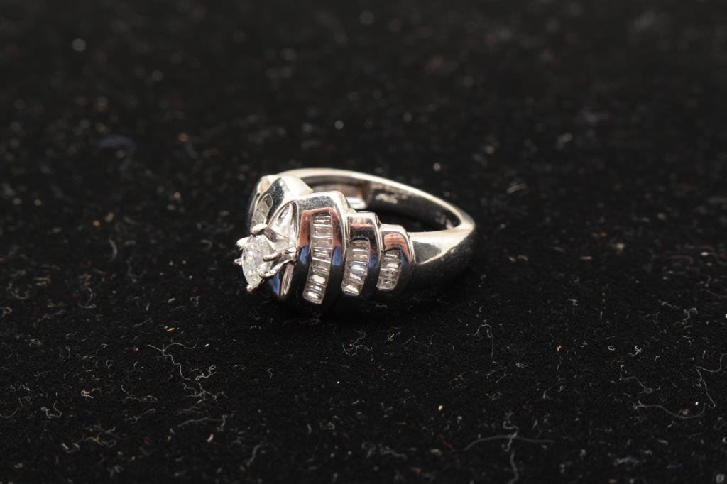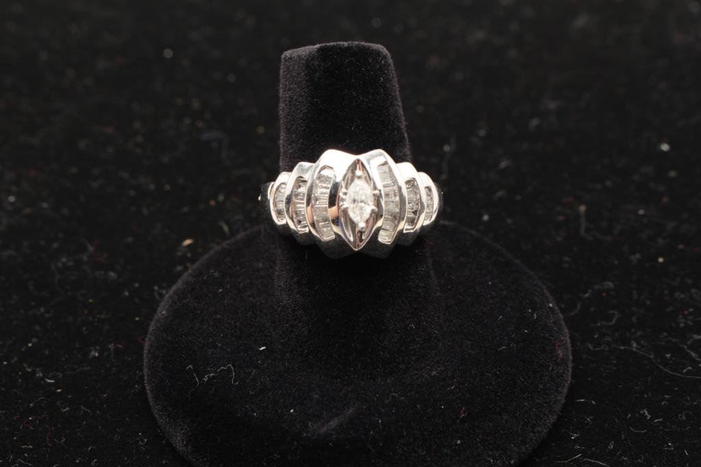 Lot 1125a One 14 k white gold ladies marquee diamond ring with
