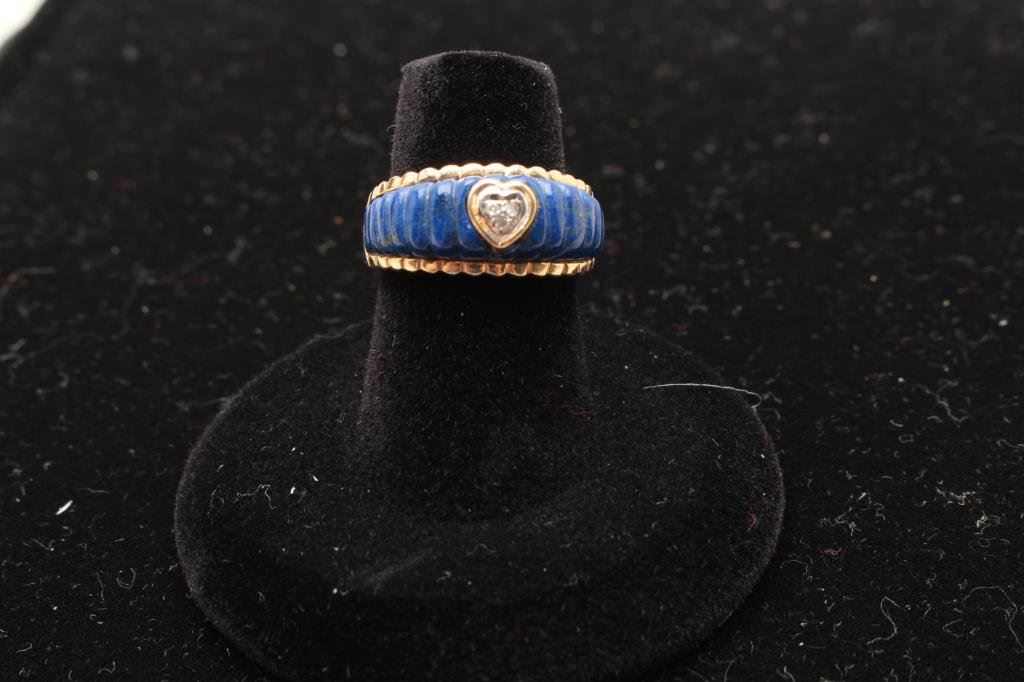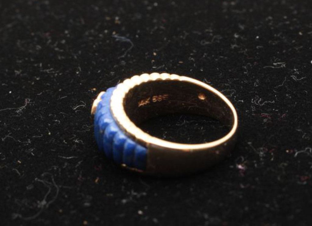 Lot 1125c One 14k yellow gold ladies ring inlaid with lapis lazuli