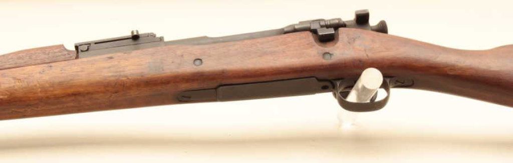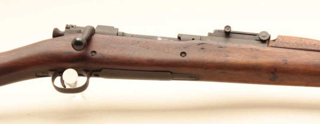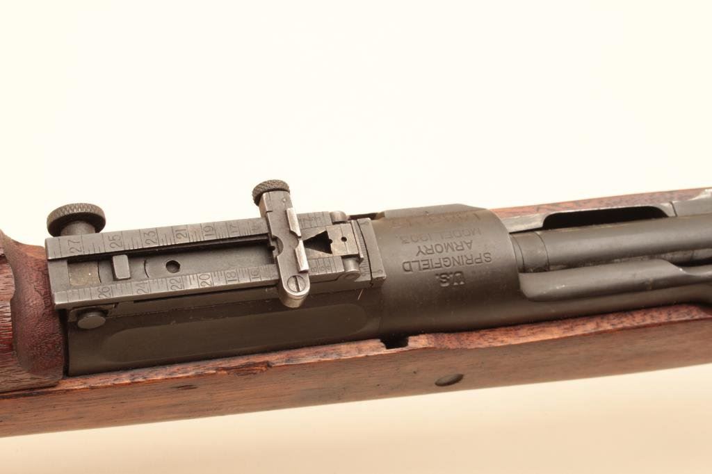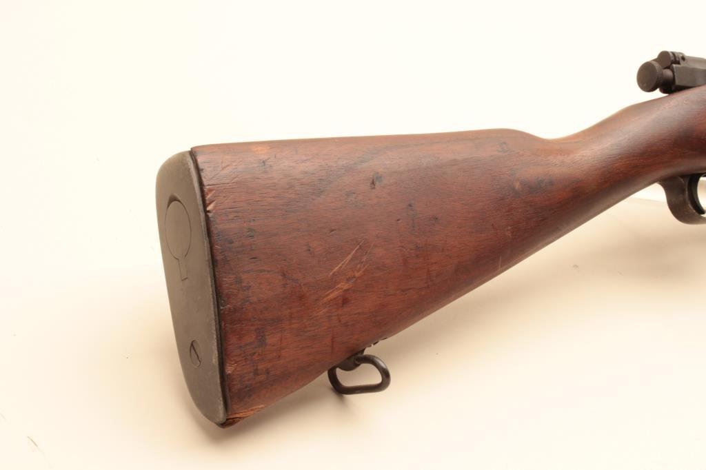 Serial #1443217. The rifle is in very good overall condition with a 24” Springfield marked barrel with the flaming bomb emblem dated 11-31. The metal surfaces retain the majority of their military finish with small mars, light surface erosion and some loss of finish on the trigger guard. The smooth wood stock is in good condition showing moderate wear with some damage on the left side of the fore end. The butt ends with a smooth steel butt plate with trap. The bore is fair, the action crisp and markings are sharp. (C+R). Est.: $400-$800.