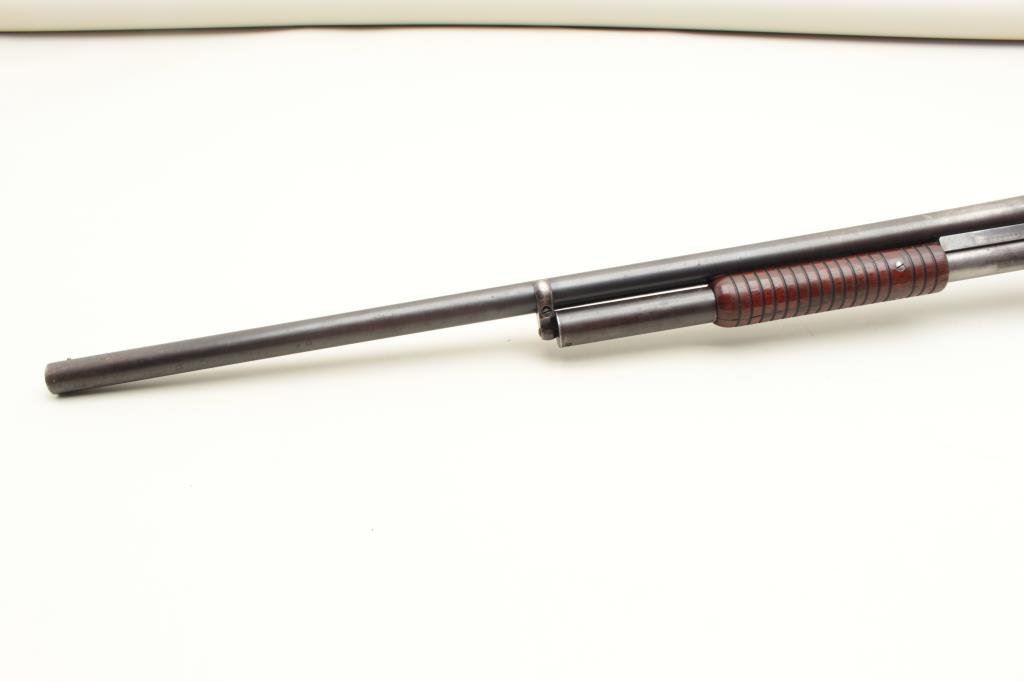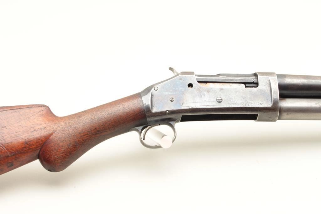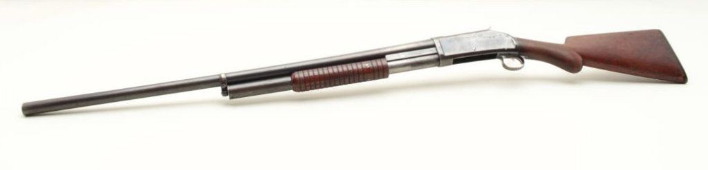 Made pre 1897 when its successor was introduced. 50%-70% original blue drifting and toning with slight scratches. Generally very good overall with sharp markings. The wood is good with scratches in the buttstock and very good fore arm. Original butt pad is intact. The barrel measures 30” and choked cylinder. Tight mechanically with near fine bore. Collectible and much harder to find in nice condition than a 97 (Antique) Est.: $300-$600