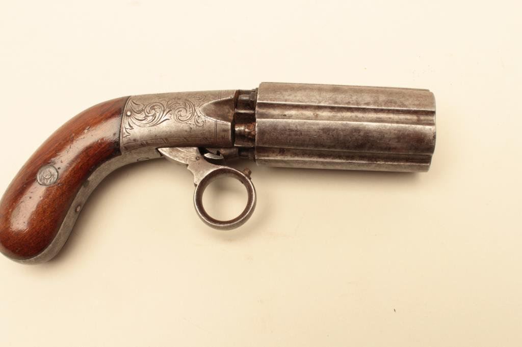 Lot 1242 J.R. Cooper patent pepperbox with six shots in .36 caliber.