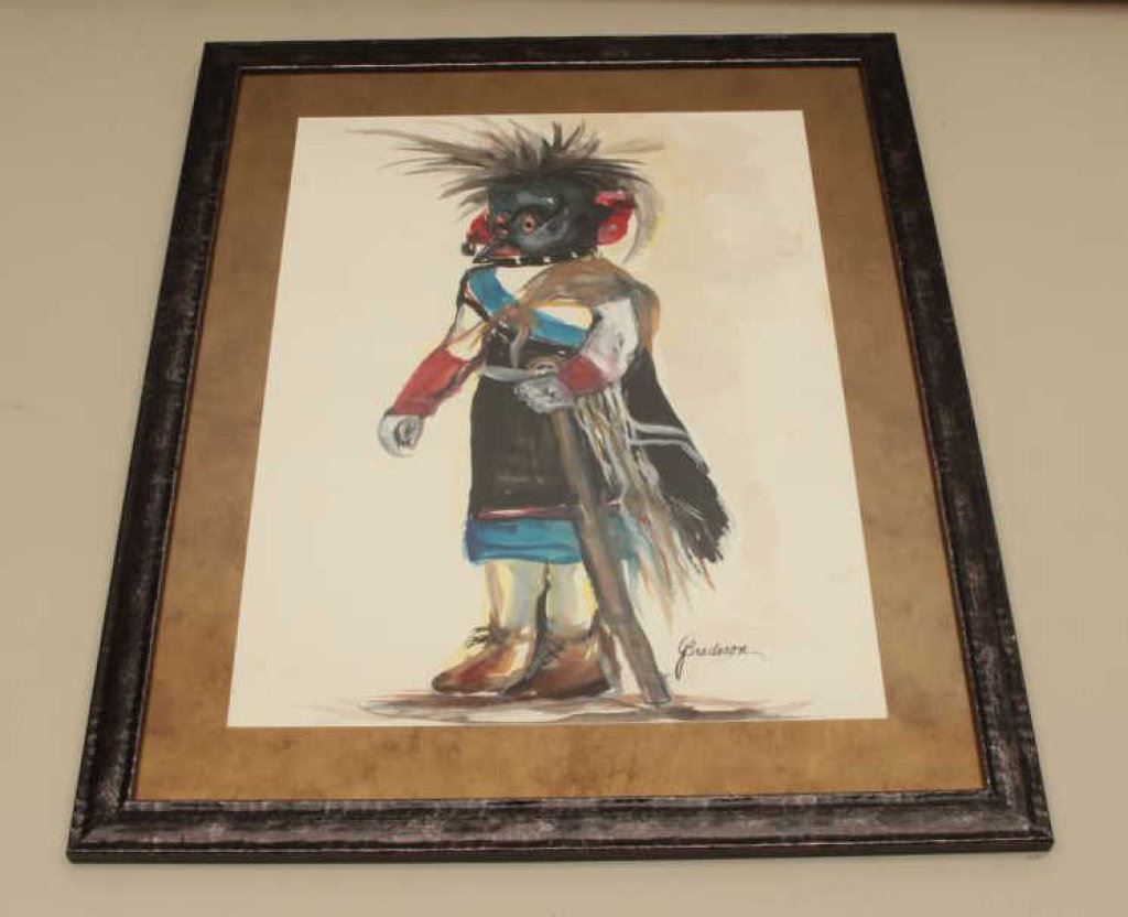Lot 1251 Framed and matted watercolor of Indian Ceremonial figure as a