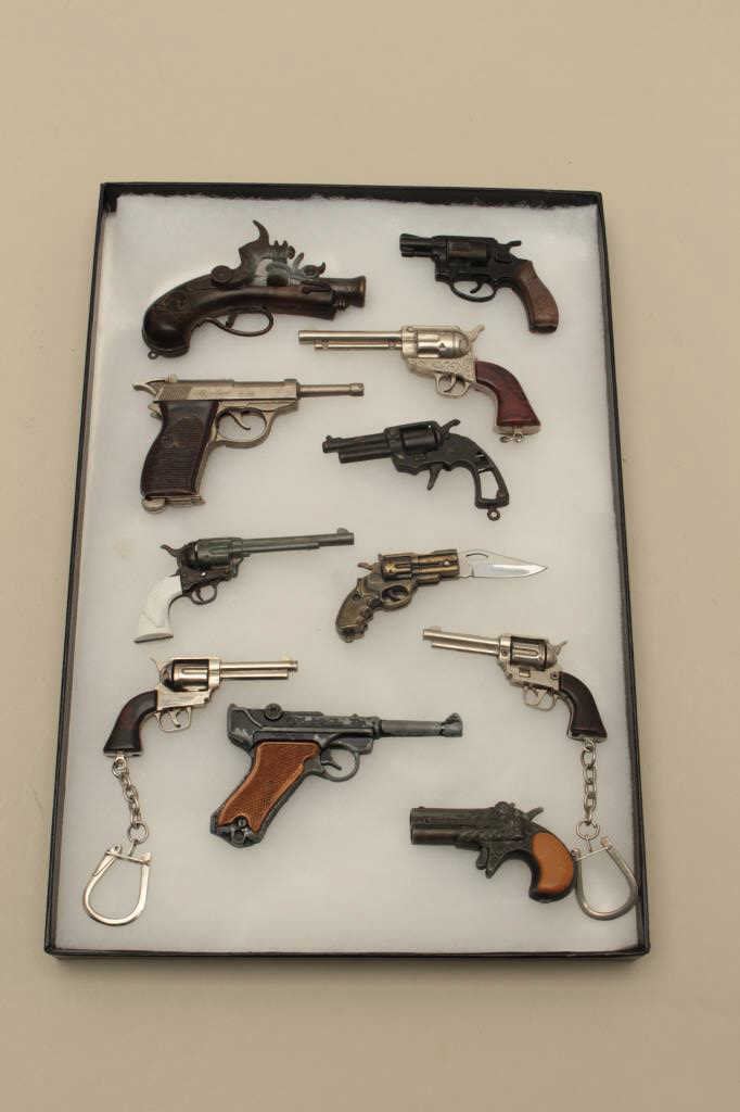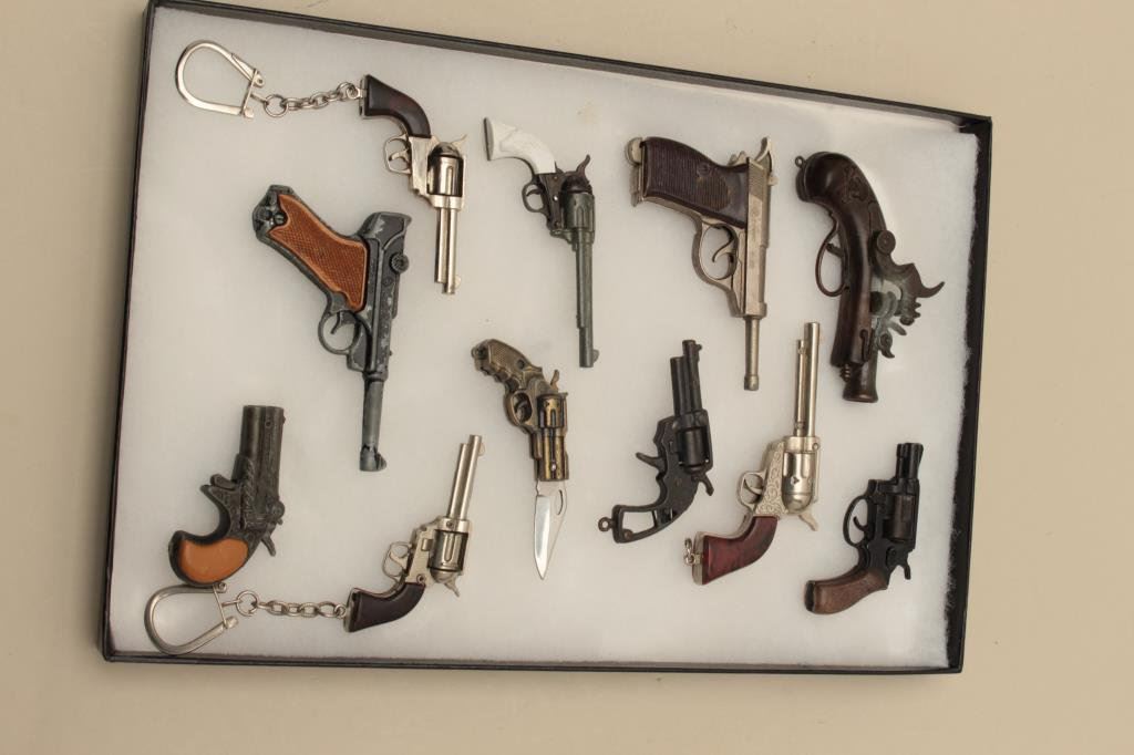 Lot 1312 Lot of 11 different miniature toy guns; 2 with key