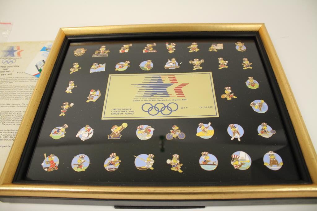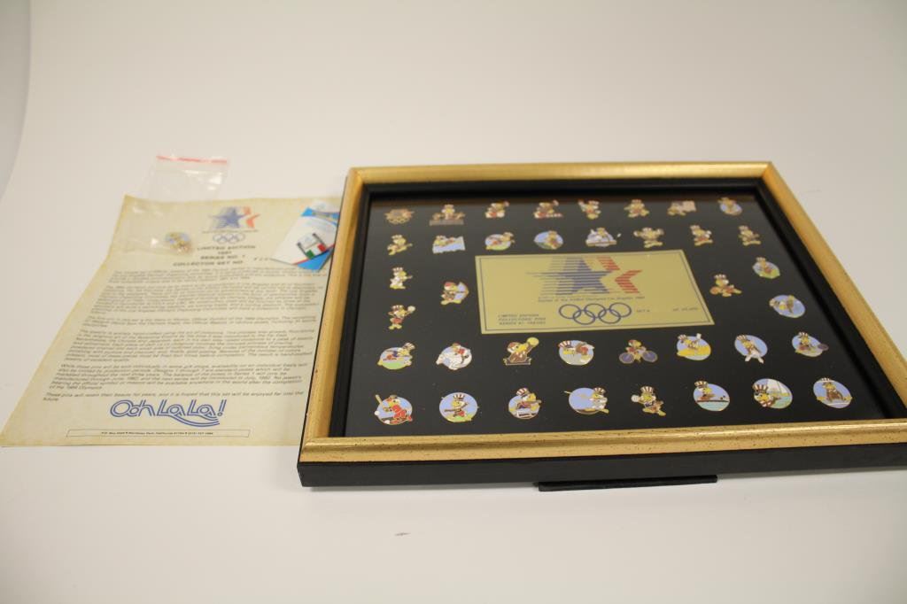 Pins of the Los Angeles 1984 Olympics (#29998/30000), in Olympics shipping cardboard box with Certificate. Also, one additional pin included from the 2006 Winter Olympic games. Est.: $100-$200