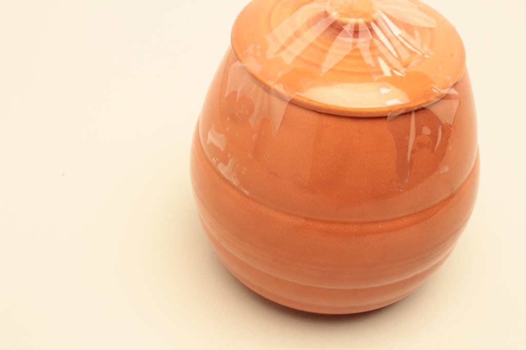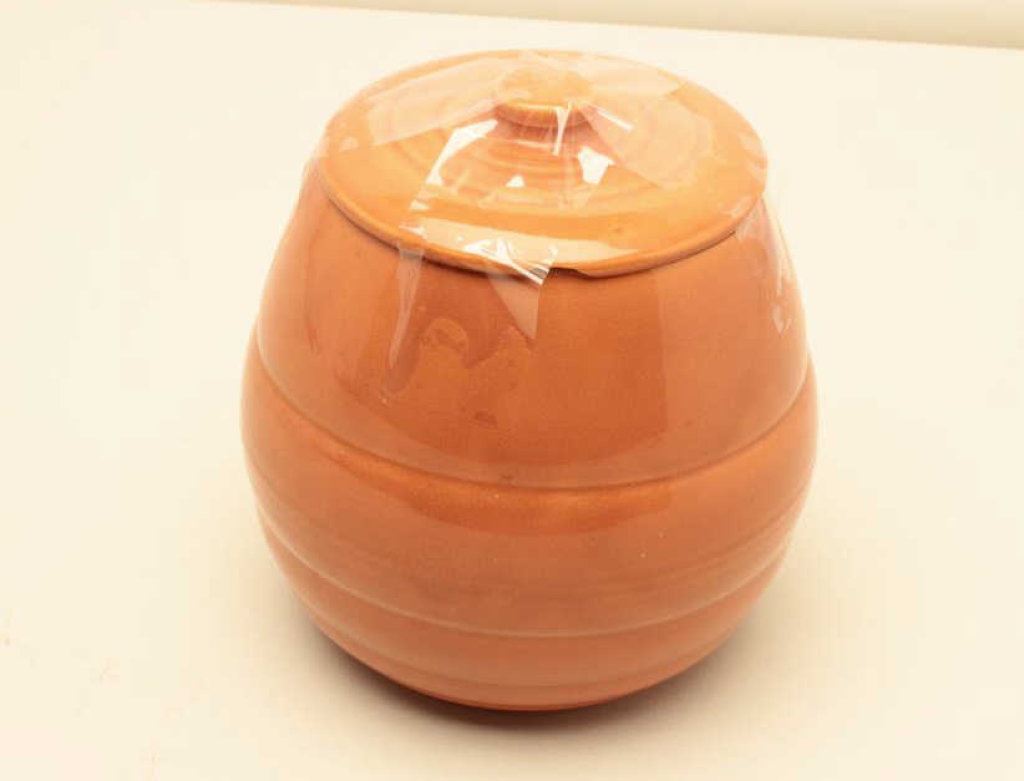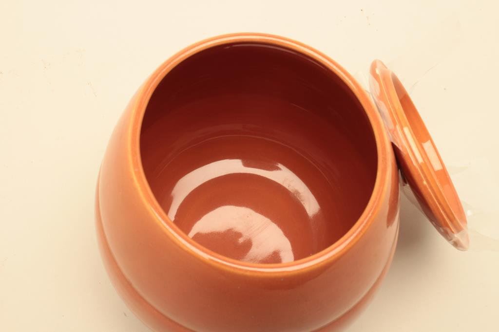 Lot 1356 Vintage Bauer cookie jar with lid, orange color, approximately 8