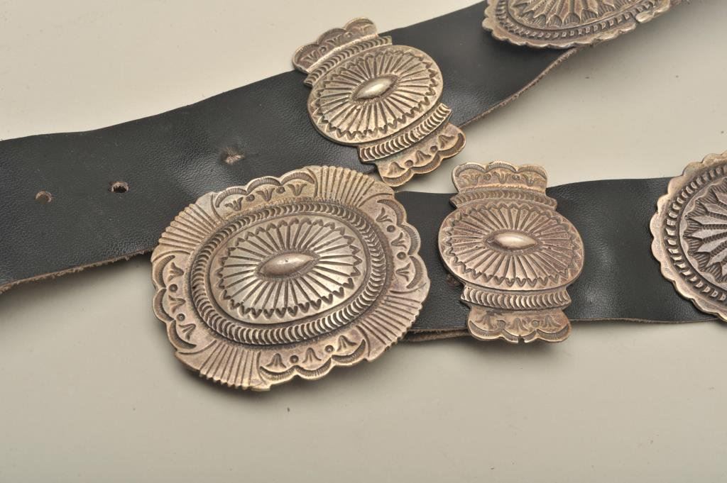 Lot 1372 Concho belt with 11 sand cast conchos plus belt buckle
