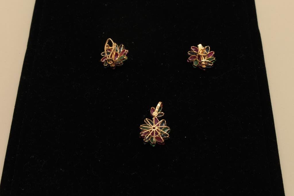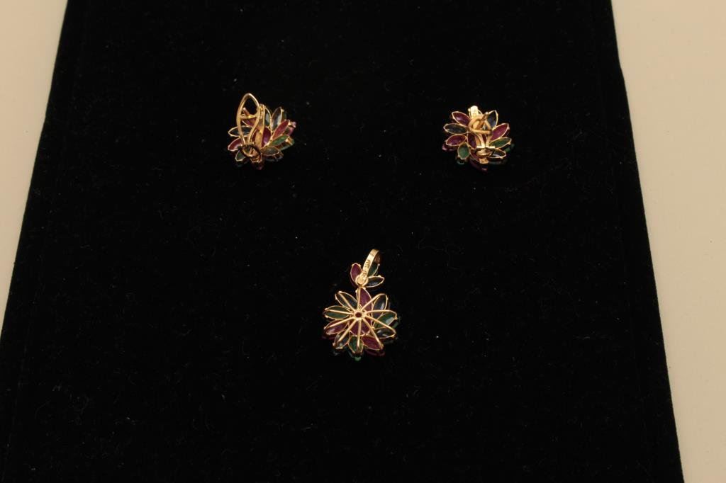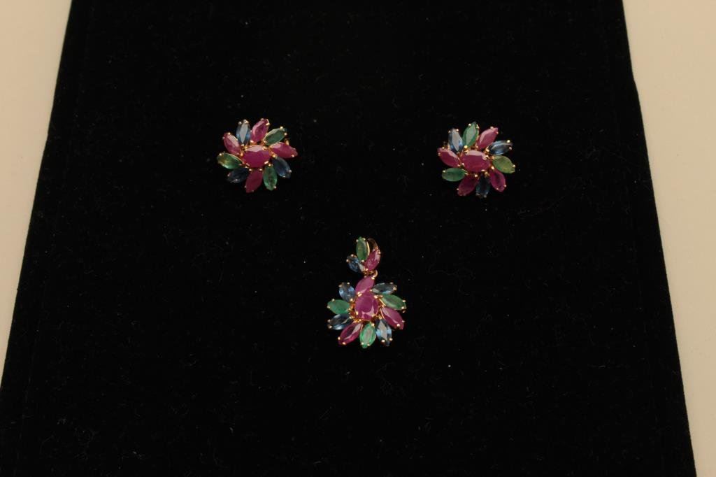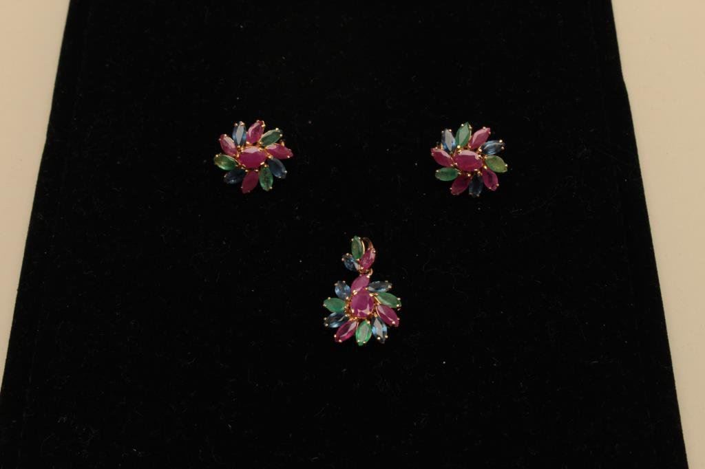 Lot 1437 Xmas special earring pendant. Ruby emeralds 7.8gr 14kt