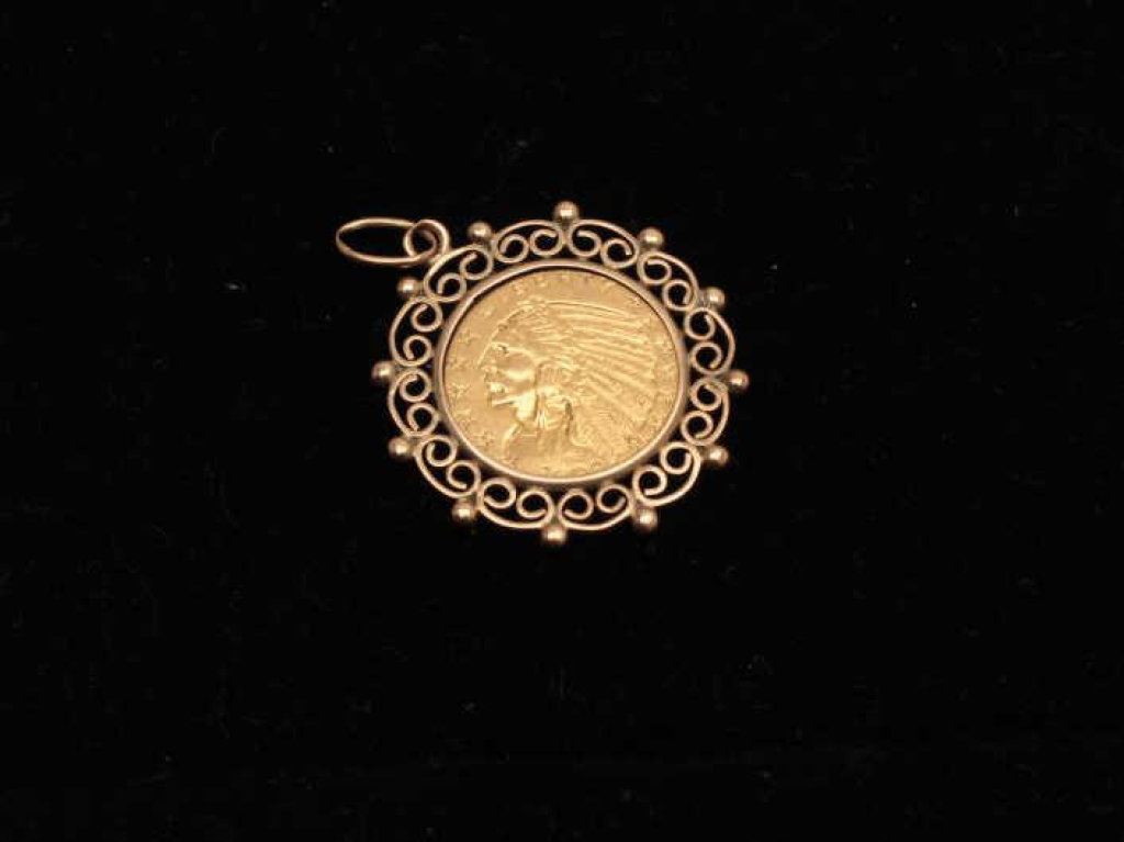 $5 indian coin pendant with 14kt holder. Est.: $700-$1400