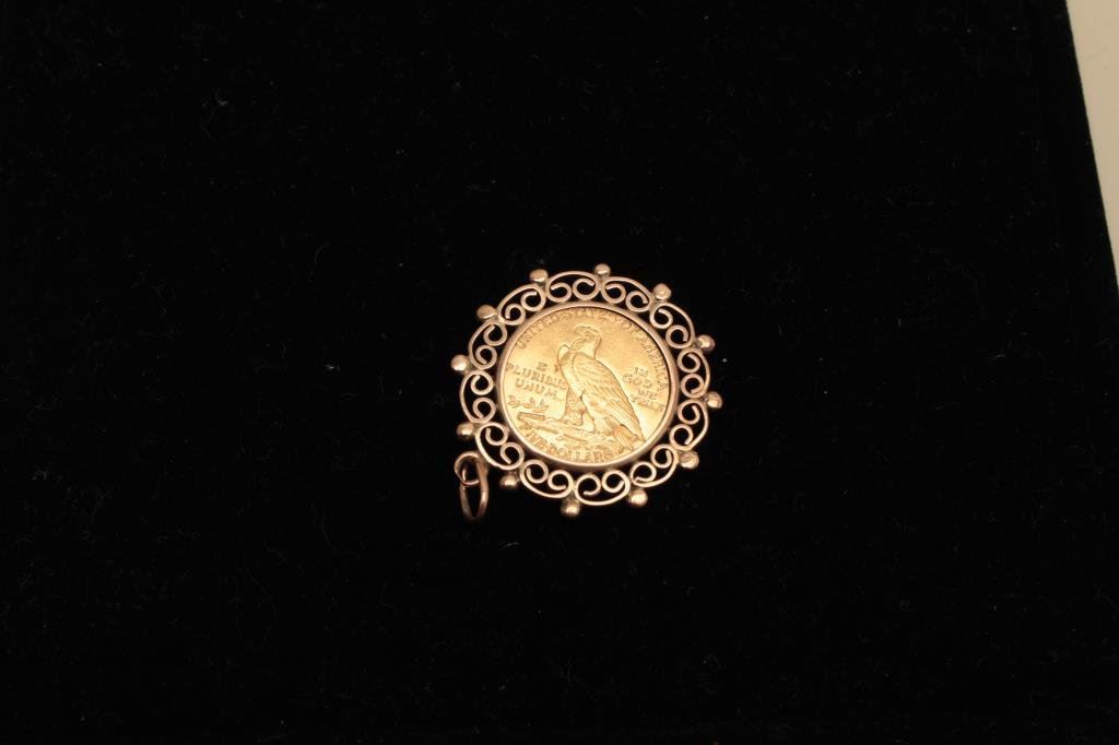 Lot 1478 $5 indian coin pendant with 14kt holder. Est.: $700-$1400