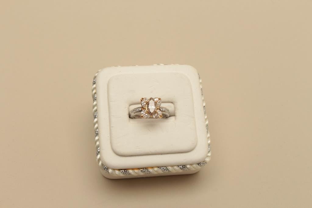 Lot 1506 1.32 diamond center with .65 side diameter 18kt white gold