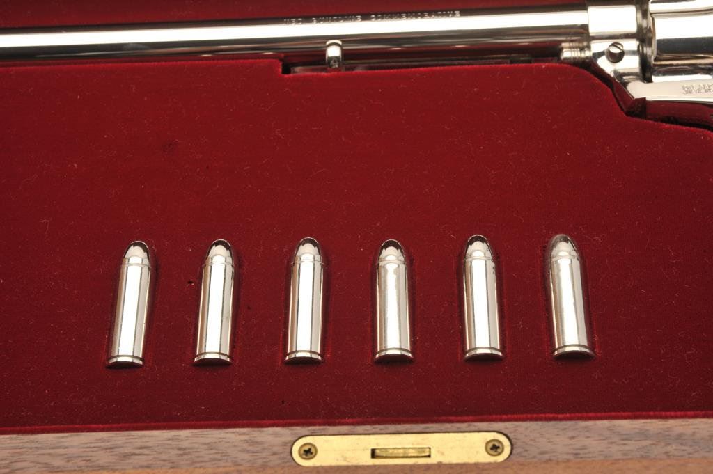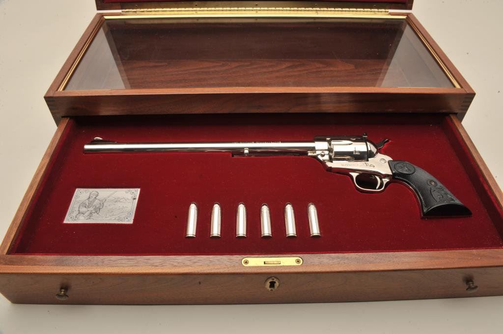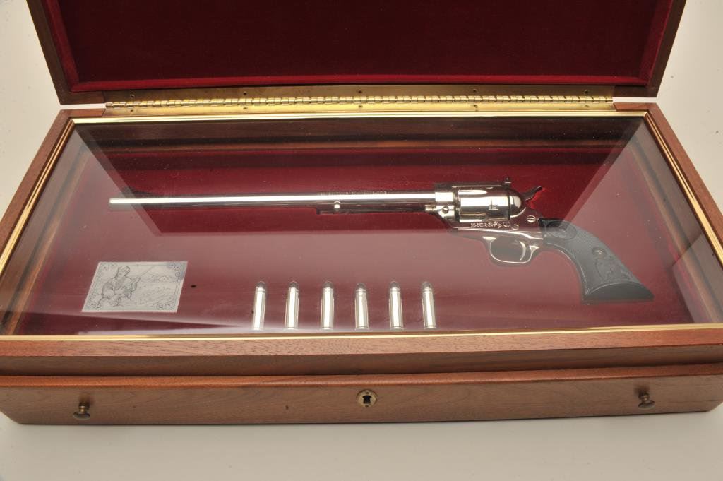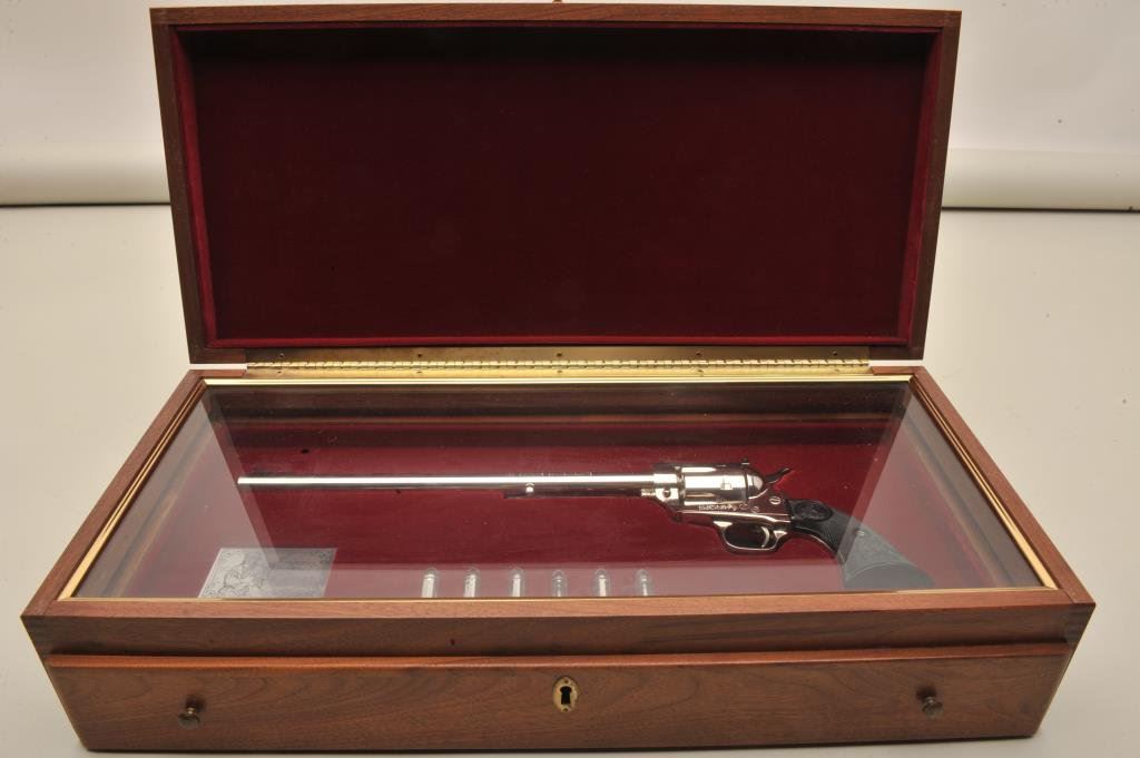 a 12” barrel, hard rubber eagle grips and in presentation display window case, S/N NB1322. No index line and no indication of firing or use. Slight handling and minor storage marks to the case. 99& plus to mint. (C&R/PPT) Est.: $1000-$2000