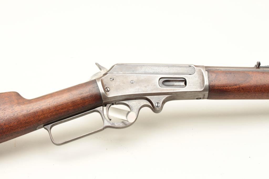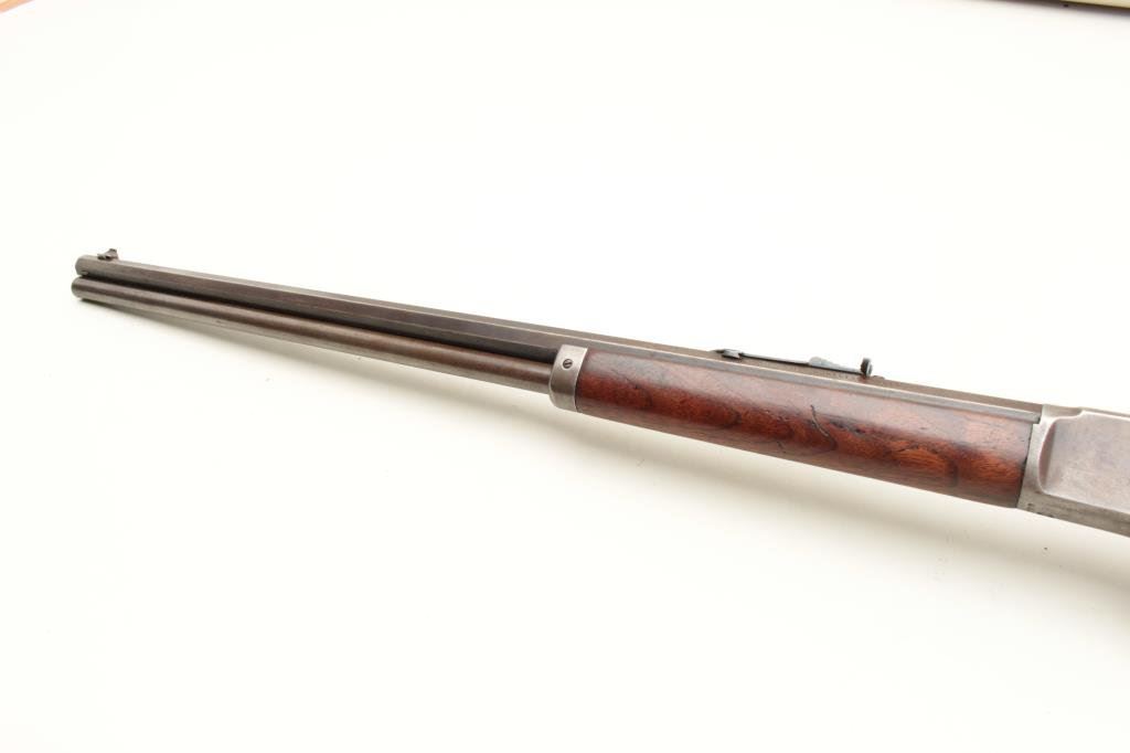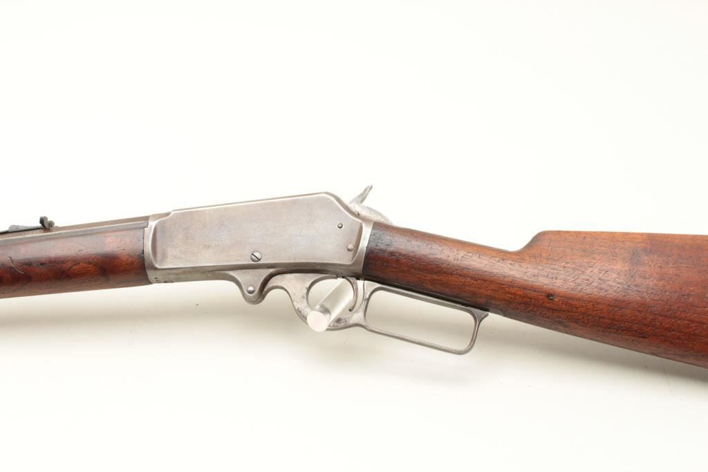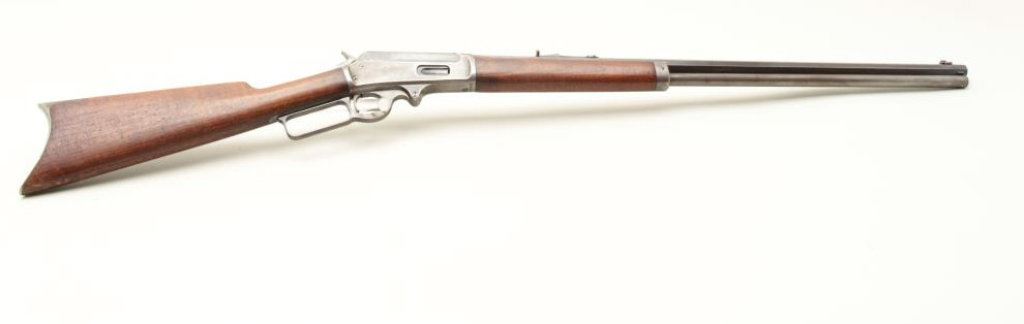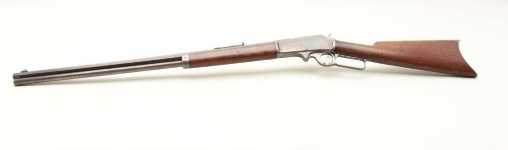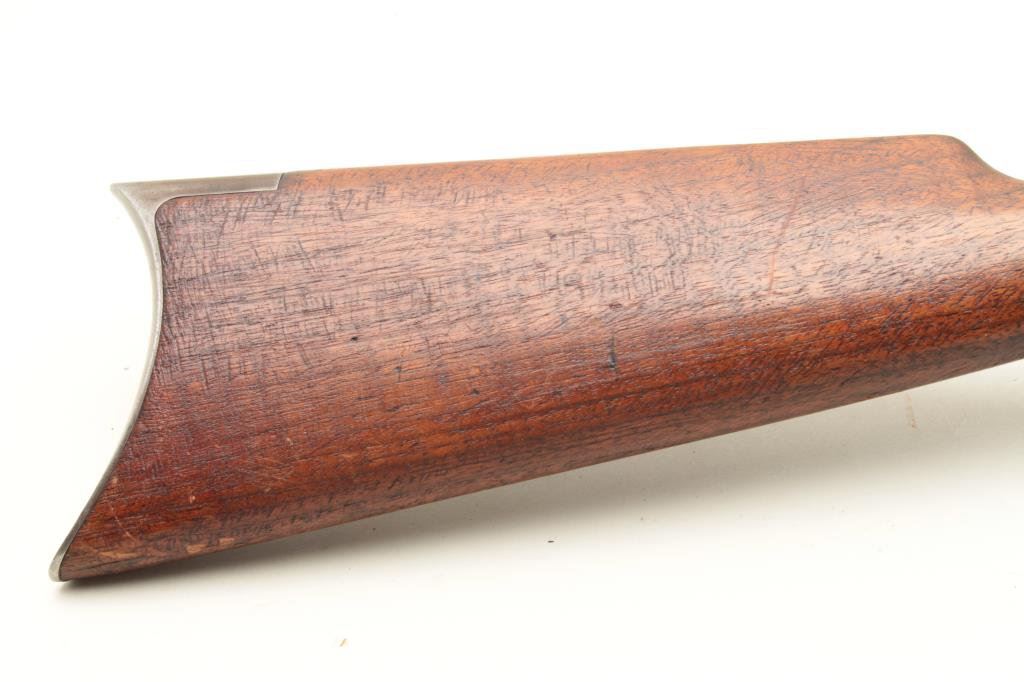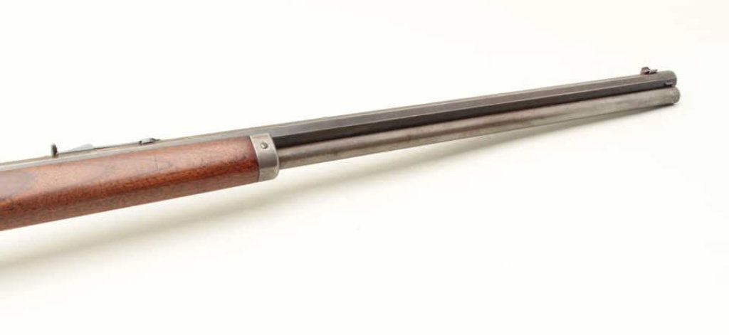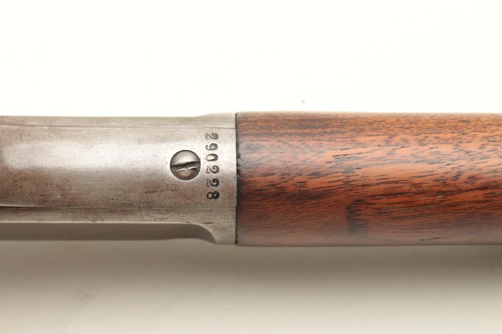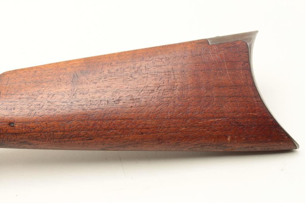 a 26” octagon barrel, full mag, rifle butt, S/N 290228. 30%-50% original blue on the barrel with the balance and tube gone to patina. Good markings. The rear sight is a later Marbles in correct dovetail. The stocks are good with minor wear and scratches. The bore is fair to good but dirty and will clean. (C&R) Est.: $500-$1000