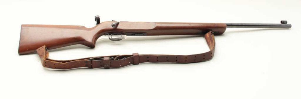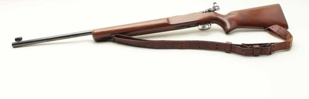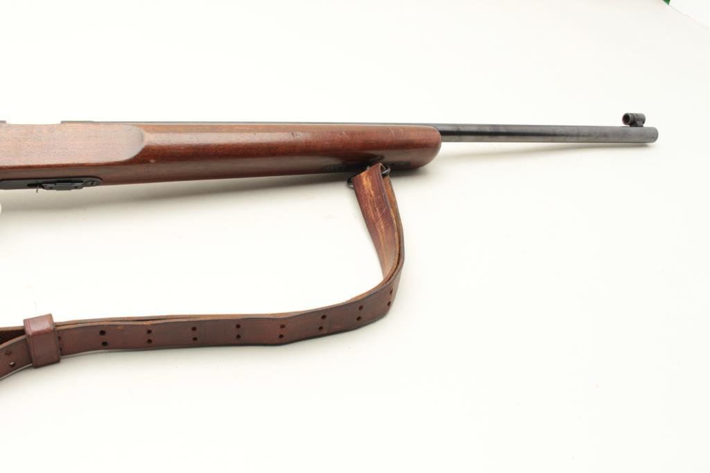 barrel, blued finish, target heavy wood stock with leather sling and adjustment bar for sling in forend, S/N 118779, in overall good to very good condition with a very good + bore, crisp action, sharp markings, majority of original blued finish, very good stock. (C&R). Est.: $350-$700.