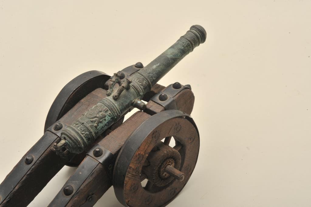 Lot 1604 Ornate desk size decorator cannon with ornate cast barrel on