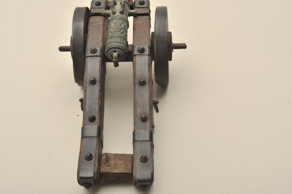 metal banded wood carriage. Measures 12 ¾” from tip to end. 8” tube. Not drilled and for display only. Early to mid-20th century. Est.: $100-$200