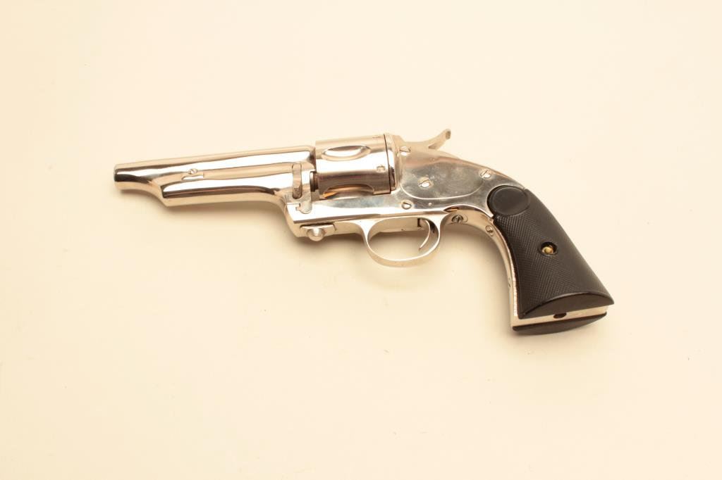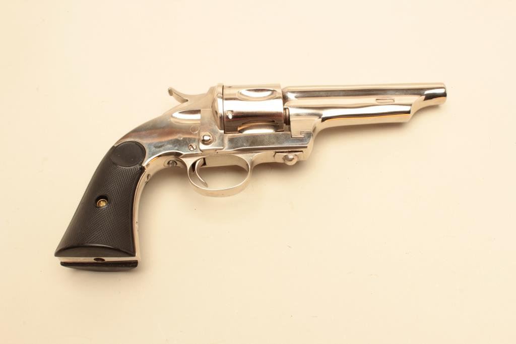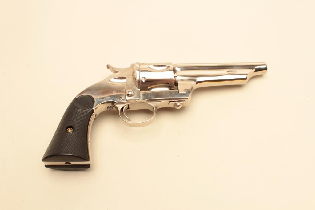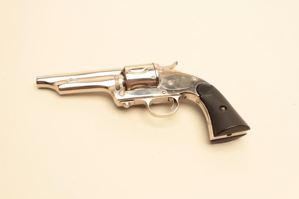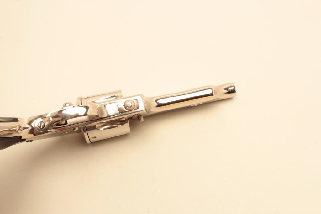 caliber, barrel reduced to 4.5”, re-nickel finish, checkered hard rubber grips, no visible S/N or other markings; in overall good condition as cut and refinished; good action and grips. (Antique). Est.: $400-$800.
