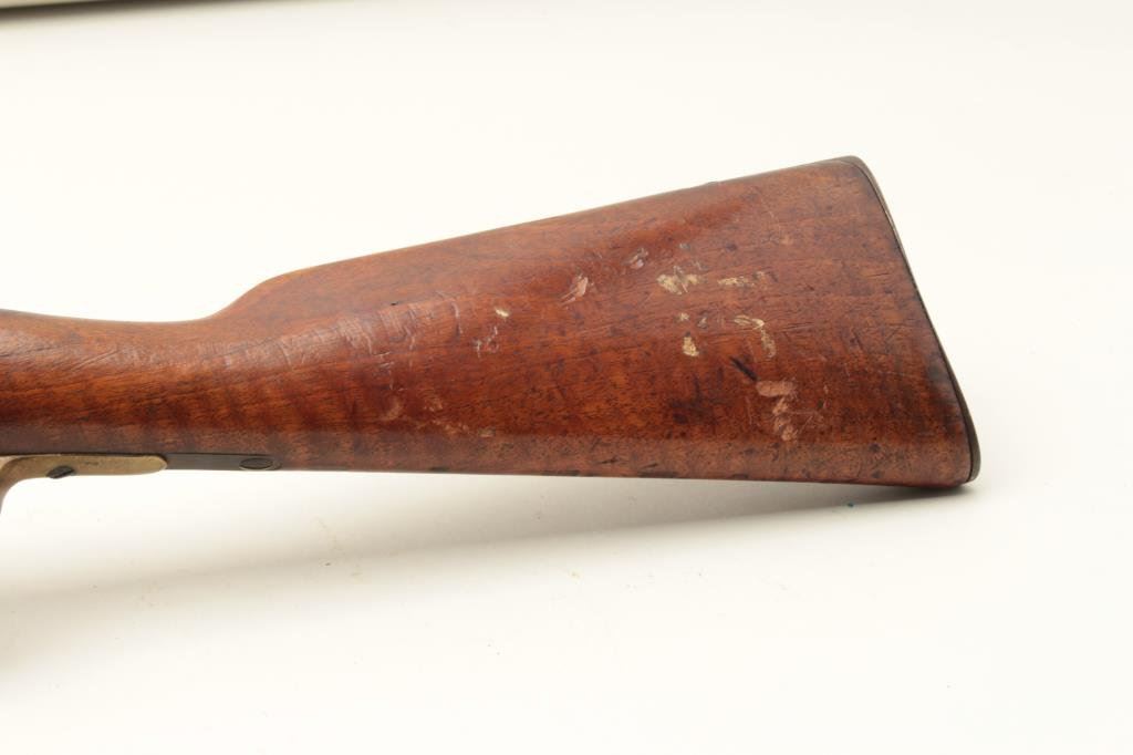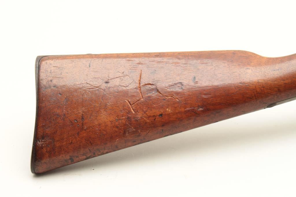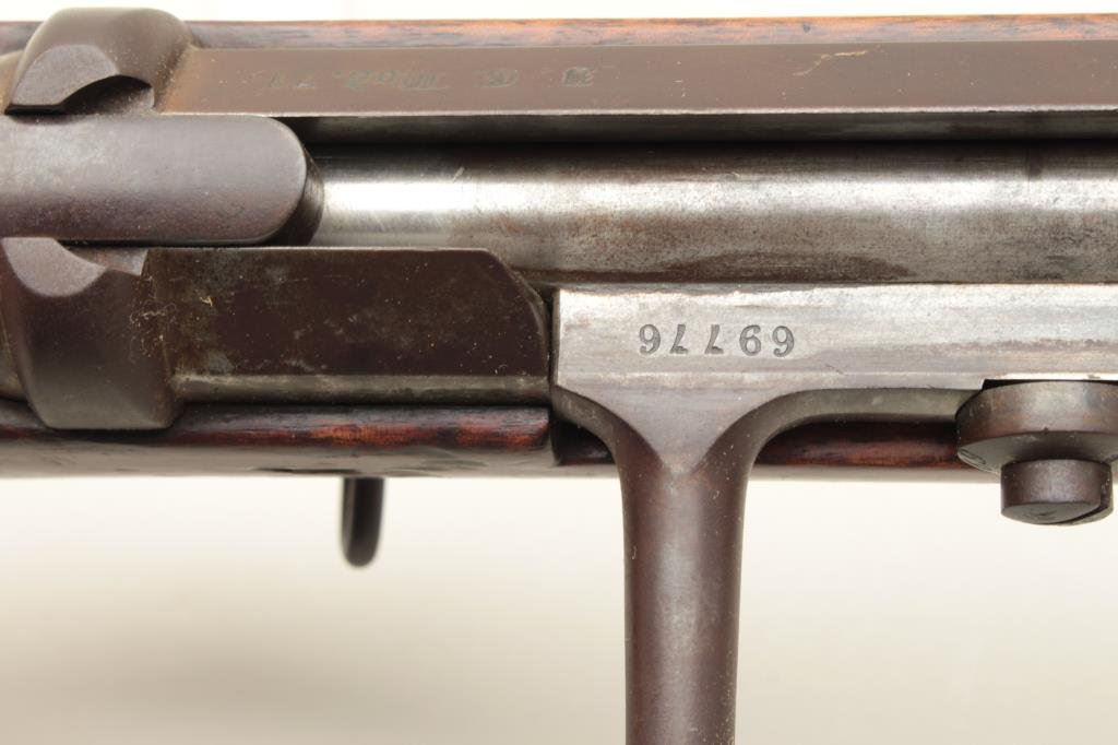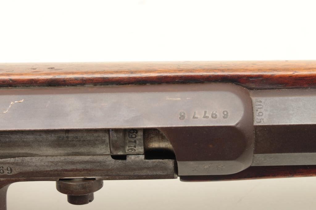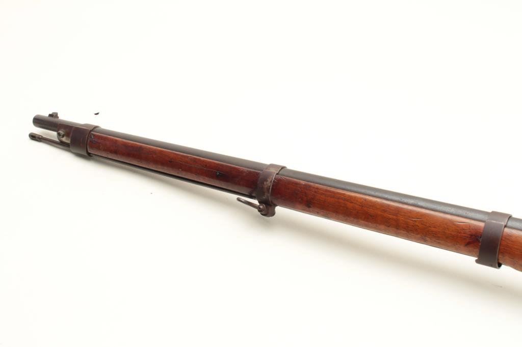 S/N 69776. “B4 R5” regimental issue on the butt. All matching serial numbers. Good to very good with patina finish and some light erosion on bright action. Good stock with inspections and some mars, scratches and dings. Good action. Near excellent bore. Cleaning rod of proper style. Est.: $300-$600