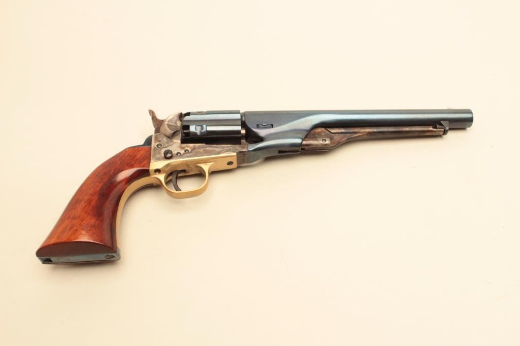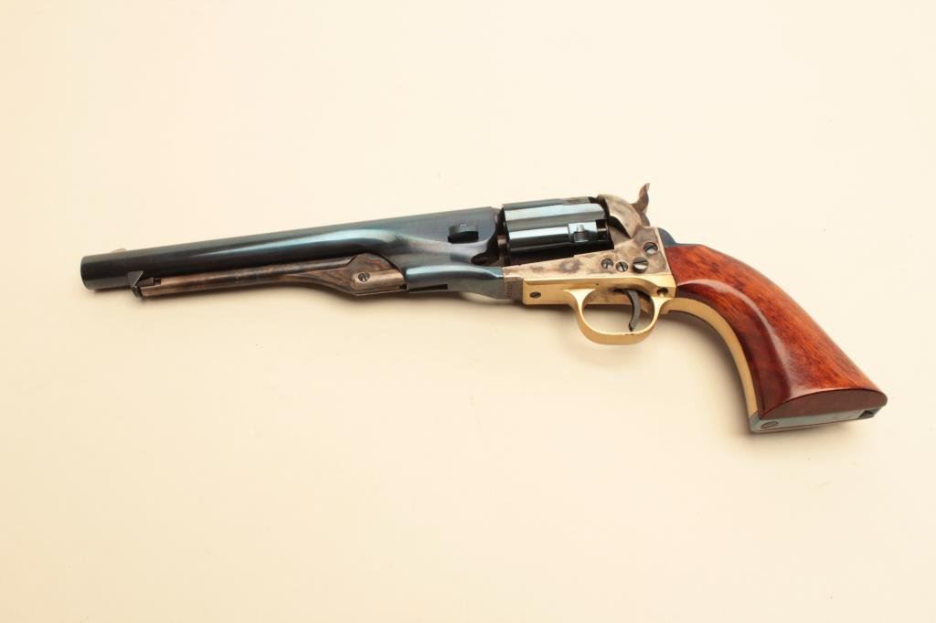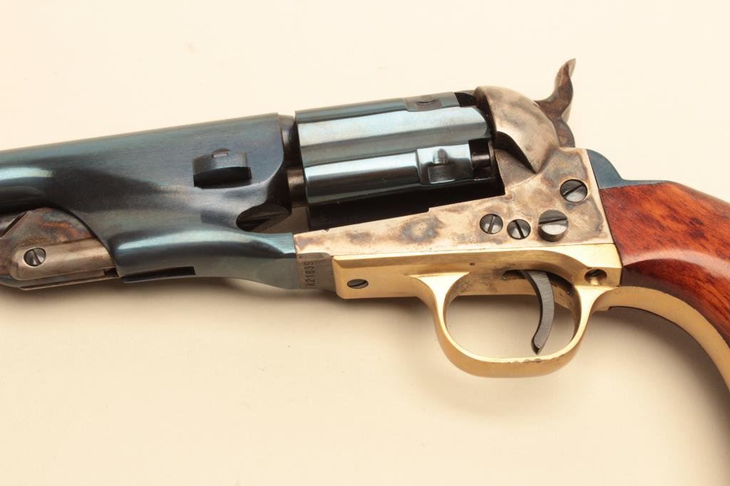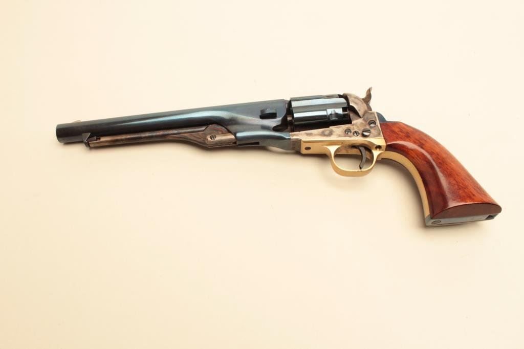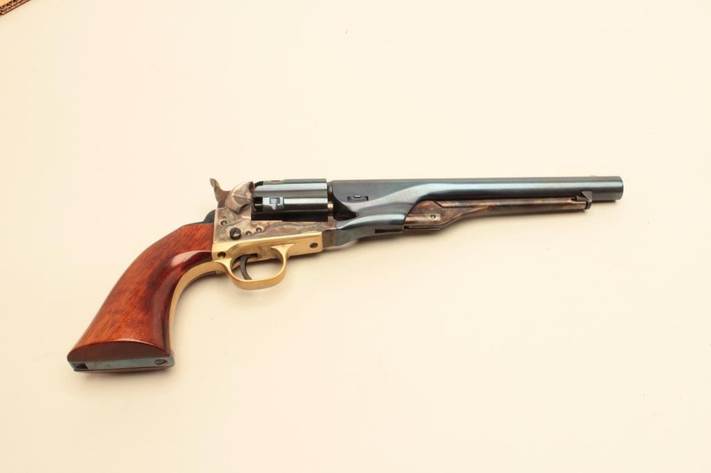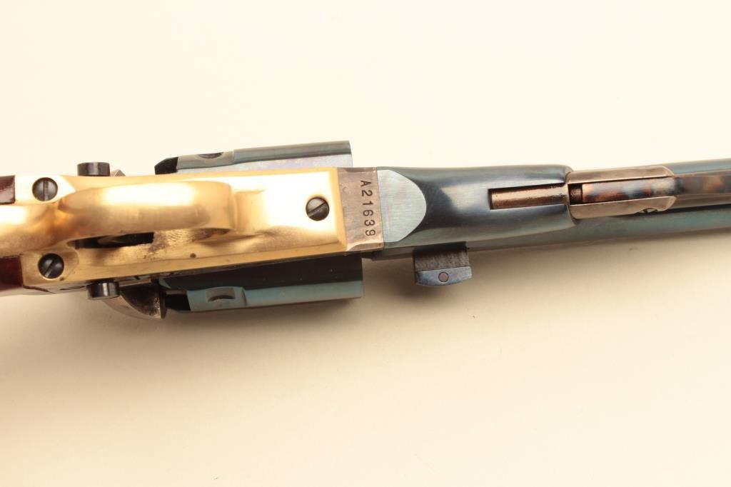 revolver, 8” barrel, blued and case hardened finish, wood grips, S/N A21639, in excellent condition showing minimal handling. (Percussion). Est.: $150-$300.
