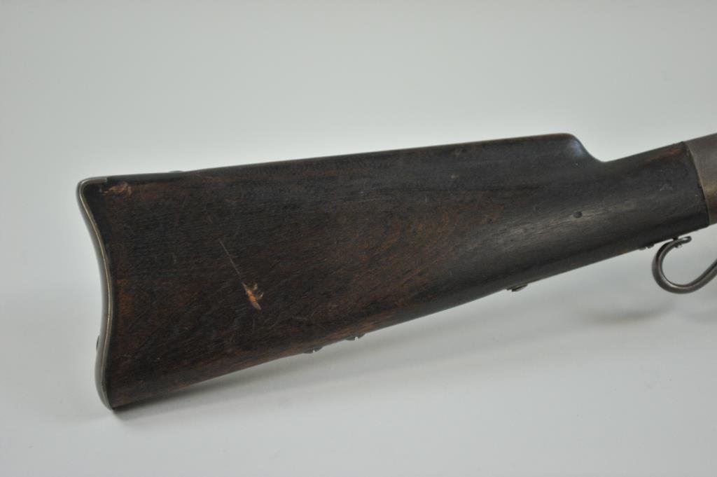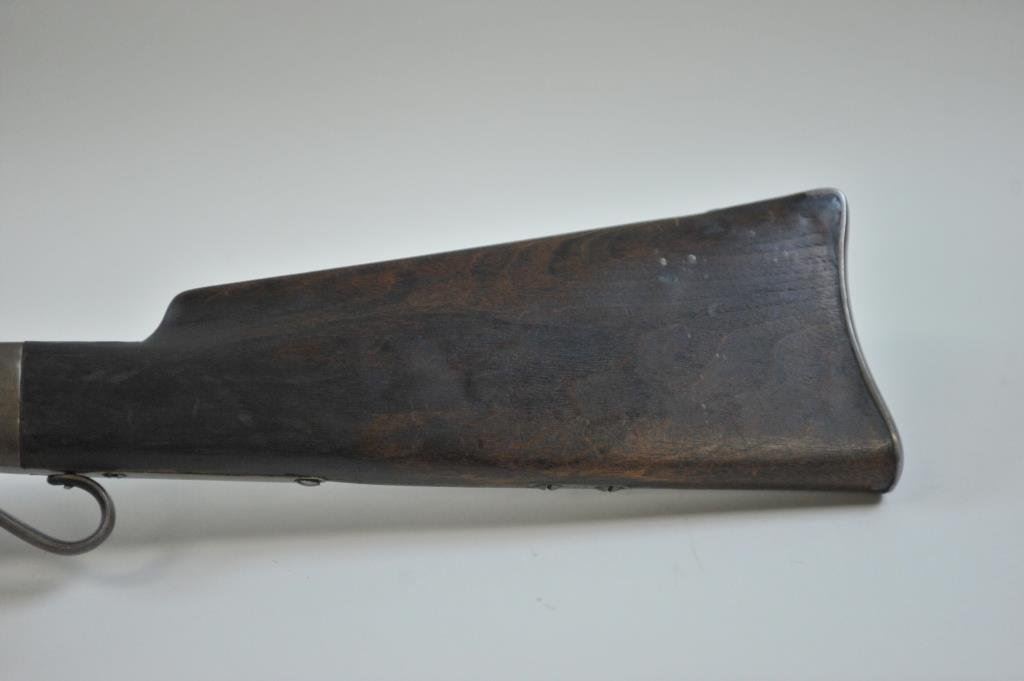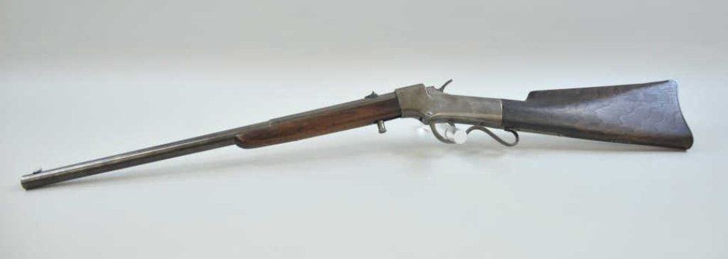 Fire caliber, S/N 4179 with a 22” barrel. Gray patina finish. Visible but light markings. Minor pitting and the stocks refinished. The action is good. The bore is fair to poor. Civil War era. (Antique) Est.: $400-$800