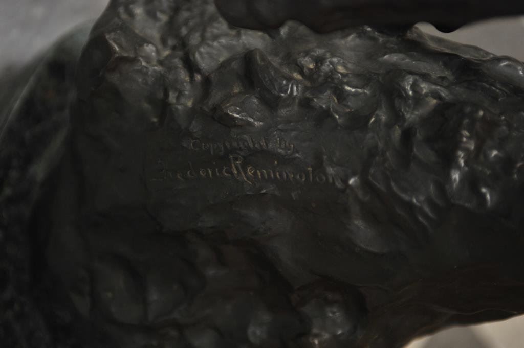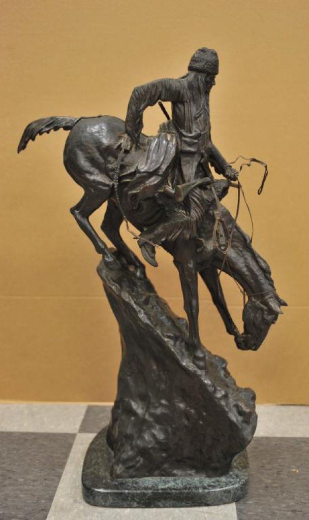 Colorado from Gary Benjamin and sold for $3000+ at that time. Measures 28 ¼” bronze only and on marble base. Quality older piece with marble base. After Remington. Est.: $600-$1200