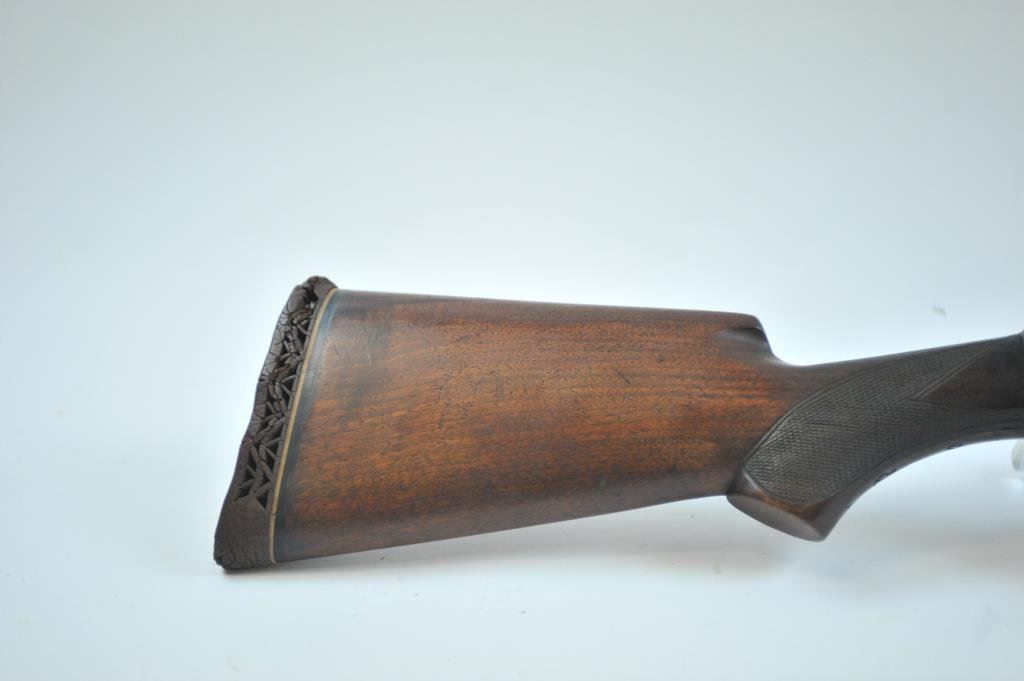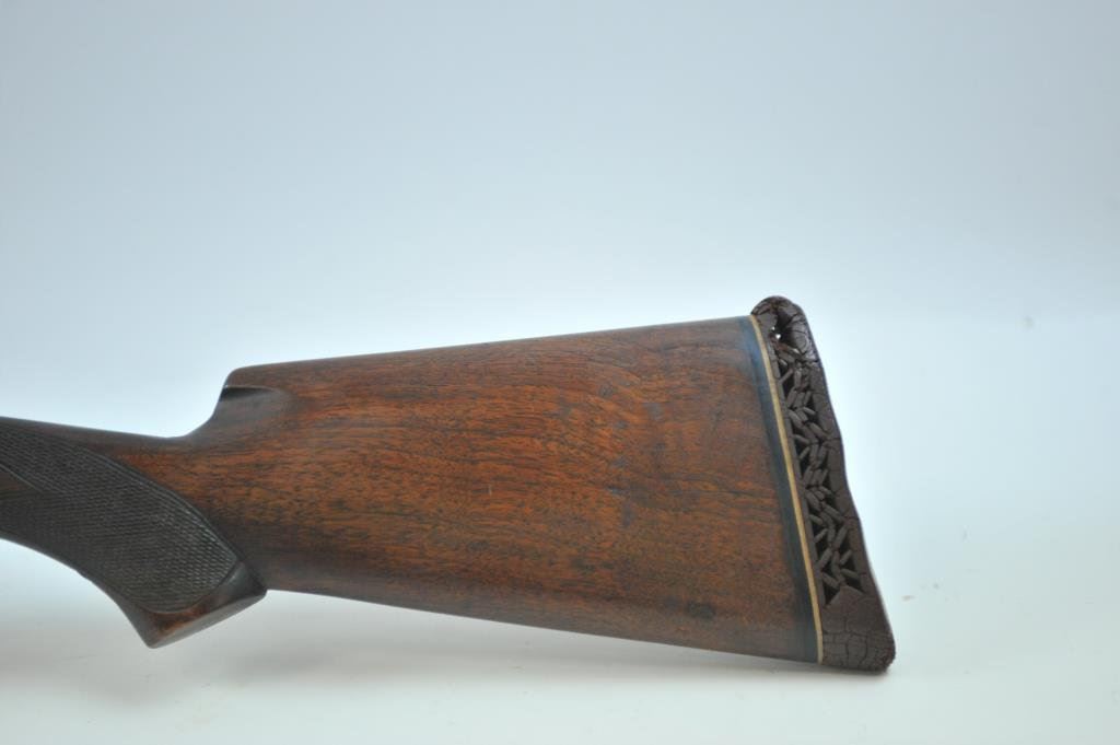 choke), checkered walnut stock with added recoil pad. Shotgun is in very good condition as refinished, good bore, good action, later added recoil pad has deteriorated and needs replacing. (C&R) Est. $100-200